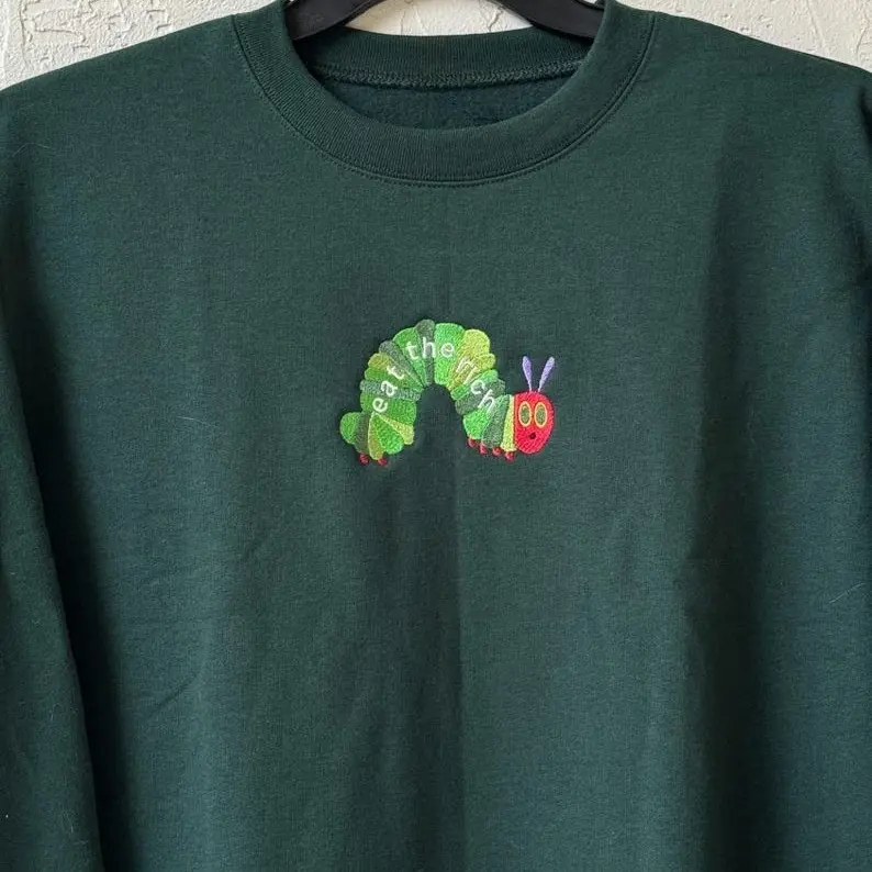 Hungry Caterpillar Eat the Rich Sweater, Embroidered Caterpillar sweatshirt Funny Gift