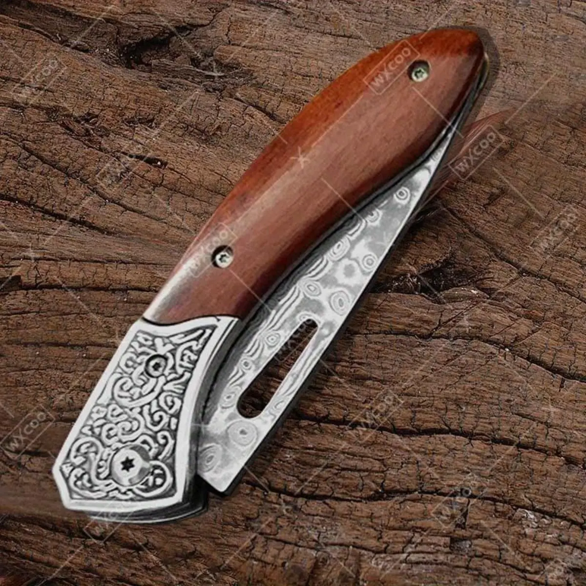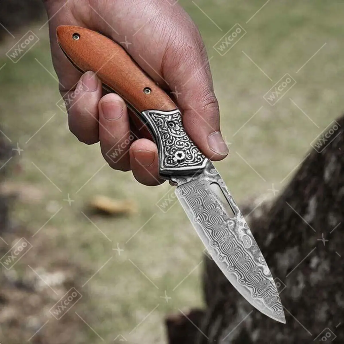Folding Knife The Wood Handle Pure Manual Damascus Steel Blade Outdoor Camping Pocket Knife