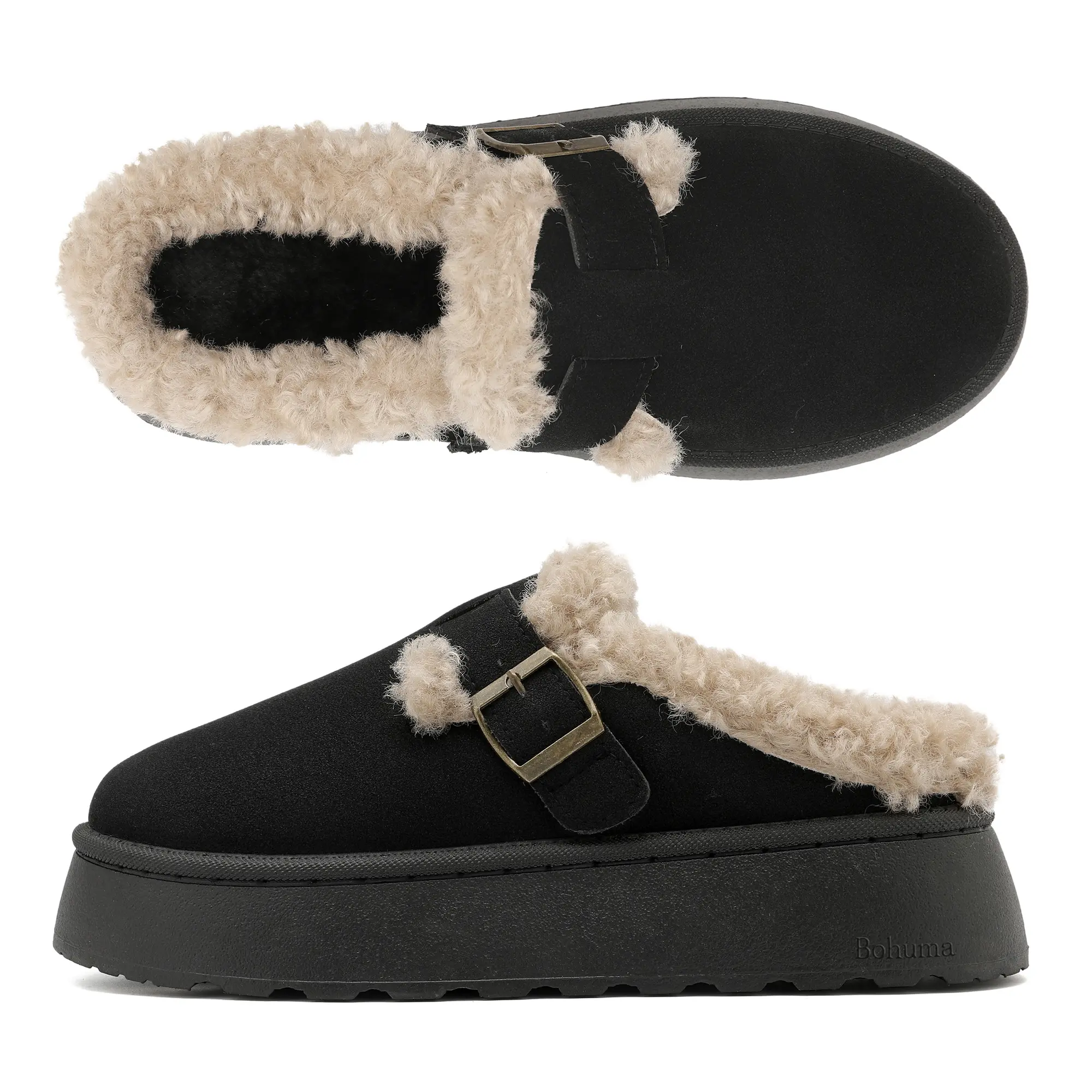 Women's Slippers Platform Mini Boots Short Ankle Boot With Buckle Fleece Lined Winter Warm Indoor Outdoor Thick Sole Plush Slipper Boots Springfresh