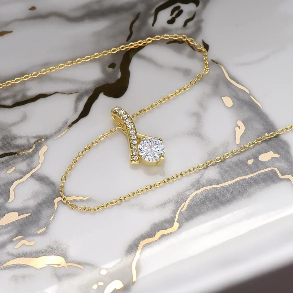 Imagine her reaction when she opens this stunning gift! The Alluring Beauty necklace features a petite ribbon shaped pendant that is sure to dazzle your special someone. Whether it's a birthday or anniversary, make sure to get her a gift she will love for years to come.