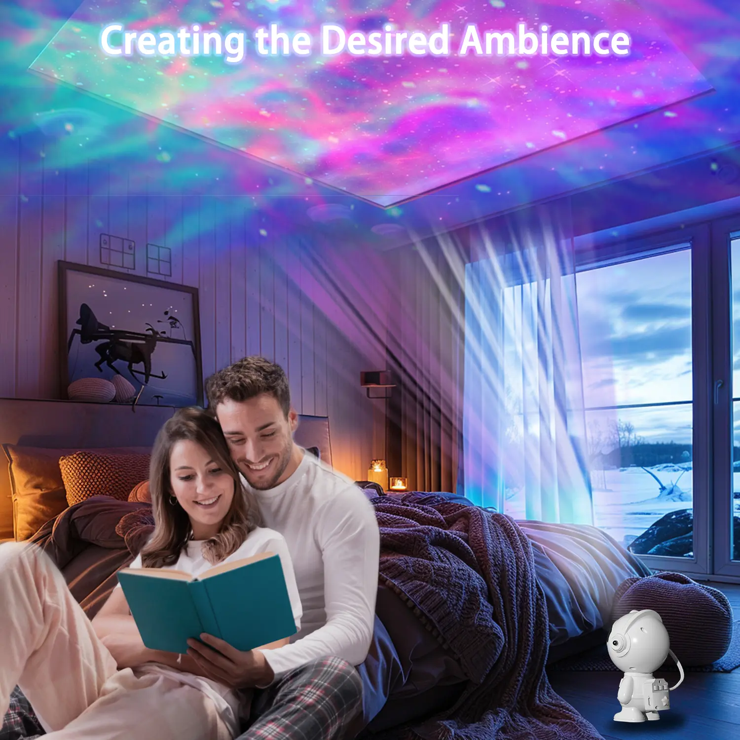【Versatile Scene Applications】This galaxy light projector is highly adaptable for various scenarios. Whether it's in bedrooms, kids' rooms, living rooms, game rooms, home theaters, during Valentine's Day dates, Christmas celebrations, weddings, parties, or in tents, this astronaut projector is a perfect choice to create the right atmosphere and enhance the overall aesthetic.