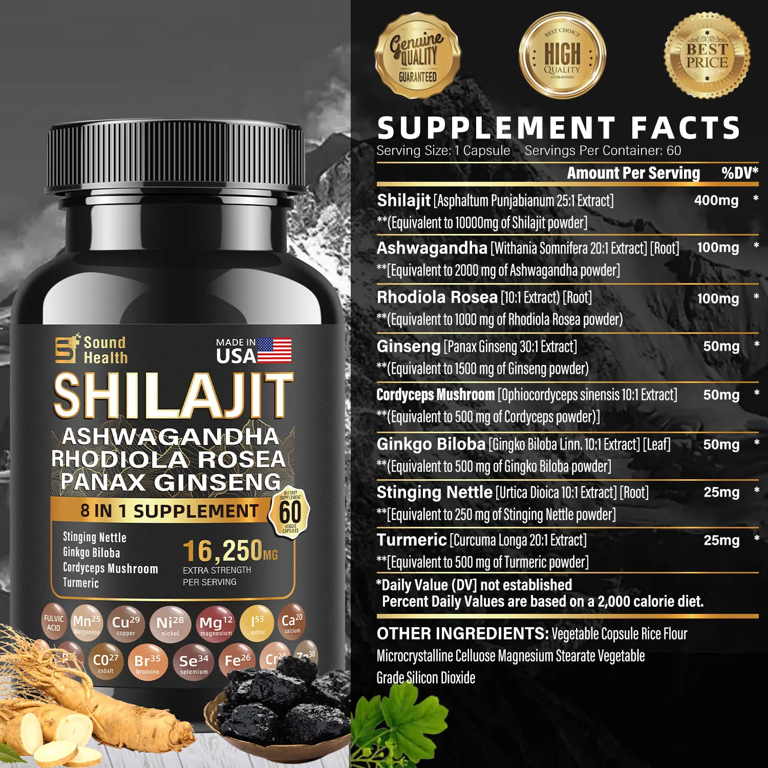 85+ Trace Minerals, Rich in Fulvic Acid. Concentrated shilajit resin in capsule form is rich in 85+ essential trace minerals, vitamins and macro nutrients of fulvic acid to aid immune and hormonal function, gut health and detoxification.