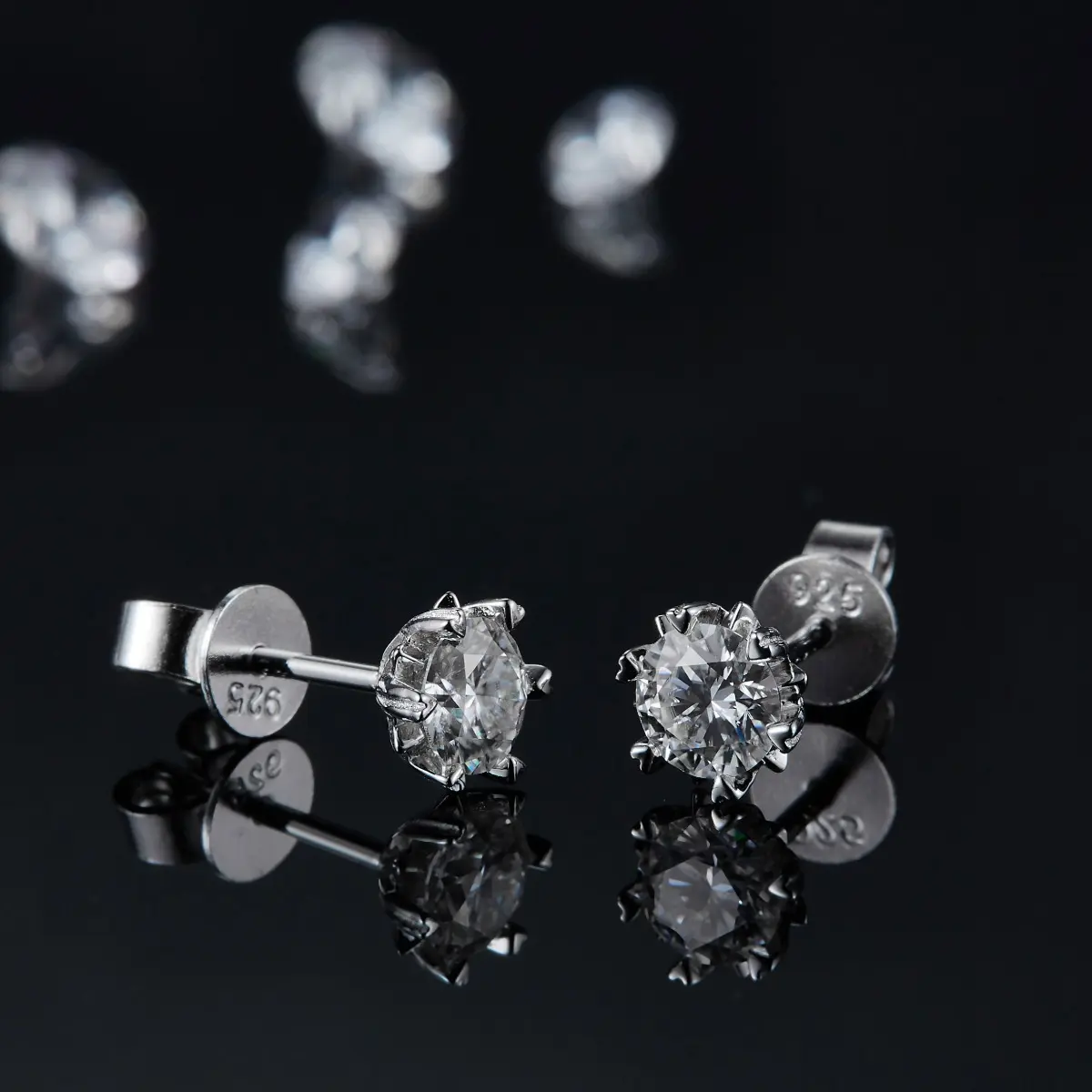 Double row half earrings S925 silver moissanite diamond quartz D grade 0.27CT S925 Silver Moissanite Stud Earrings