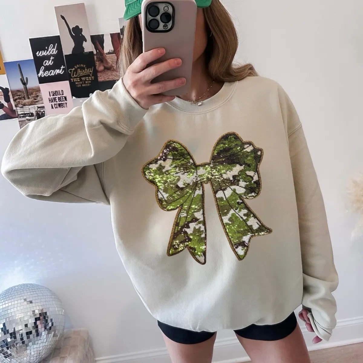 Camo Bow Sequins Iron On Patch for Women’s Sweatshirt and Shirt