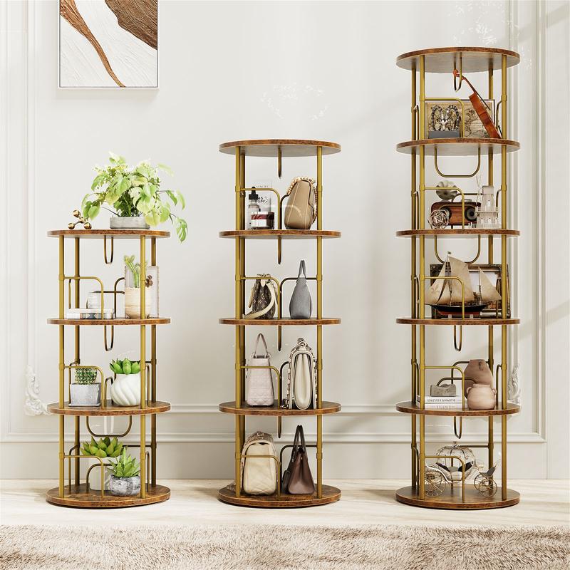 I really like the shelf. I think it goes nicely with my bedroom furniture so that’s where I placed it. I didn’t want to fill it up too much because I think it looks better with less. It was easy to put together. I think I had the most confusion figuring out the rotating thing placement.