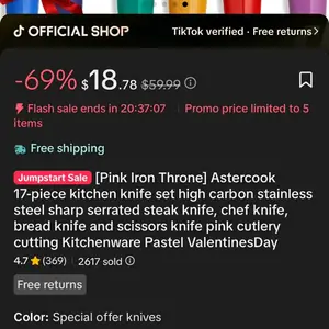 ![[Pink Iron Throne] Astercook 17-piece kitchen knife set high carbon stainless steel sharp serrated steak knife, chef knife, bread knife and scissors knife pink cutlery cutting Kitchenware Pastel ValentinesDay [Pink Iron Throne] Astercook 17-piece kitchen knife set high carbon stainless steel sharp serrated steak knife, chef knife, bread knife and scissors knife pink cutlery cutting Kitchenware Pastel ValentinesDay](https://p16-oec-general-useast5.ttcdn-us.com/tos-useast5-i-omjb5zjo8w-tx/735bbf7ef135489f8181069ed693f74b~tplv-fhlh96nyum-resize-jpeg:800:400.jpeg?dr=12186&t=555f072d&ps=933b5bde&shp=6ce186a1&shcp=607f11de&idc=useast5&from=1826719393)