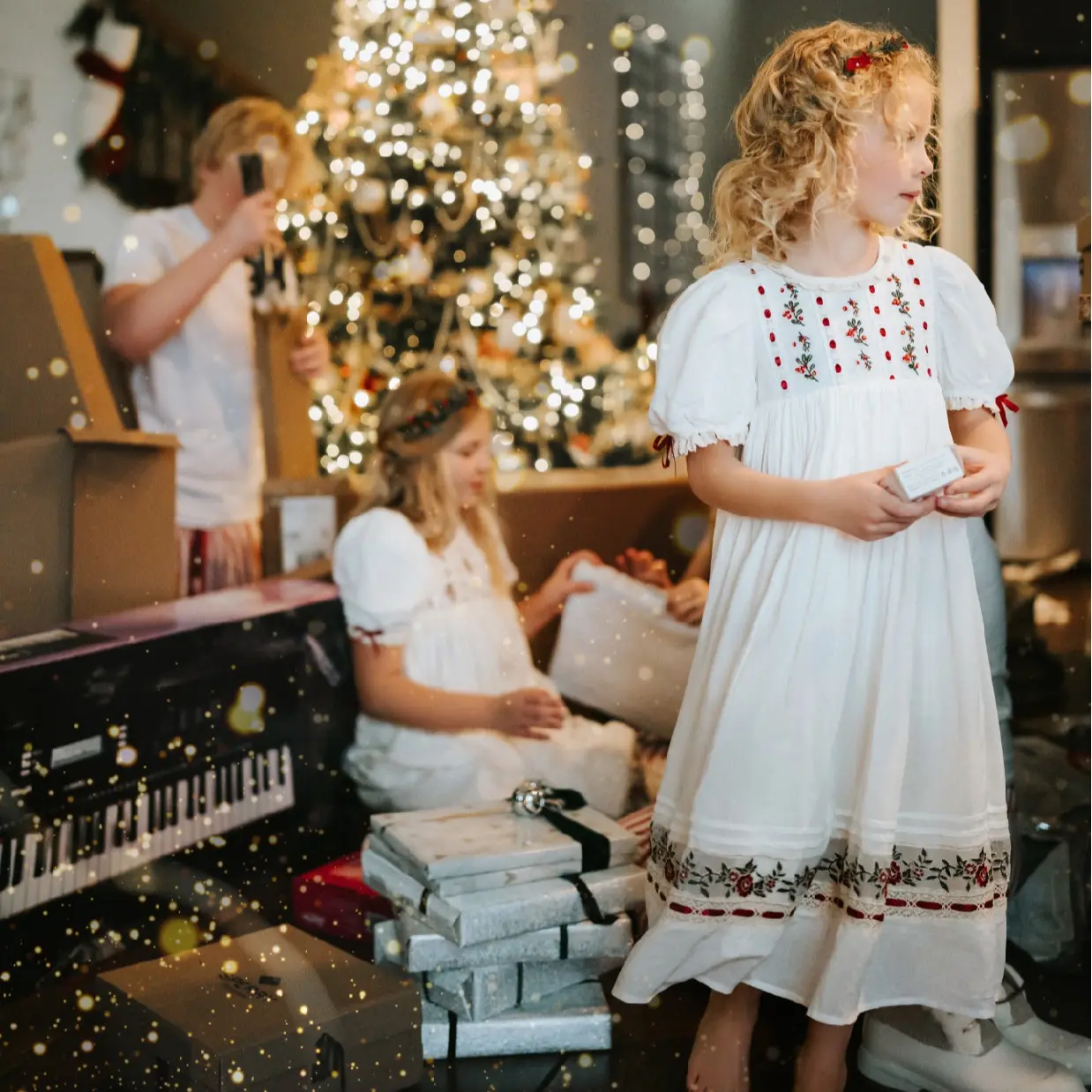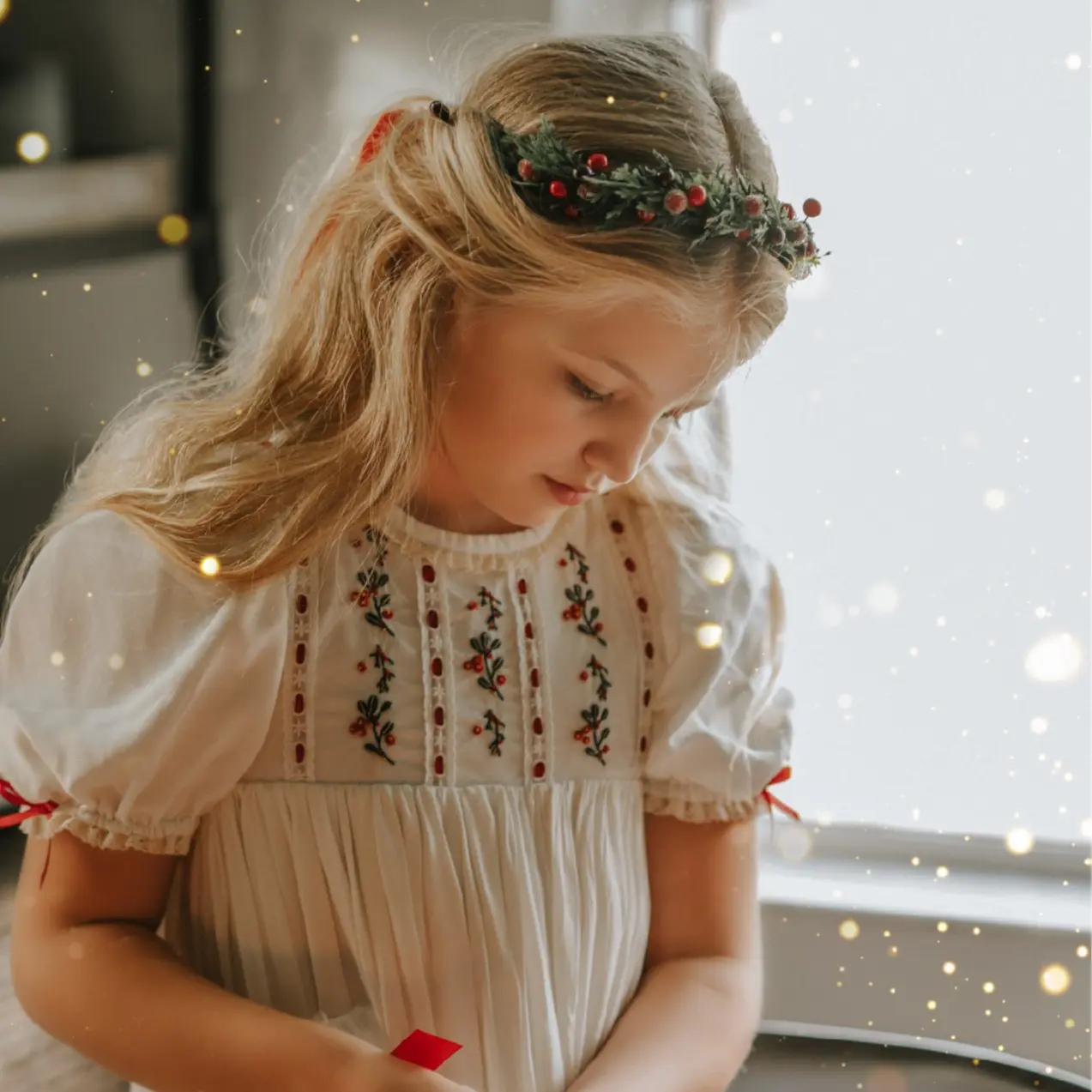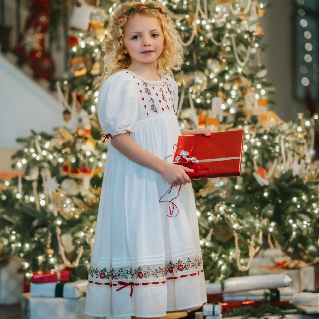 GARMENT CARE: Light-colored girls' dresses should wash separately from other dark clothing. Machine washable, low-temperature tumble dry.