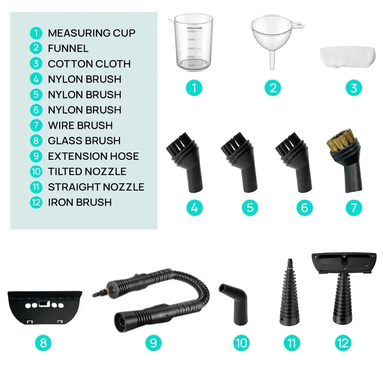 Schenley 18-in-1 Steam Mop with Detachable Handheld Steamer for Walls, Floors, Tiles, Tackles Grease & Sticky Messes, Includes Multiple Accessories Cleaning Tools Cleaning Set