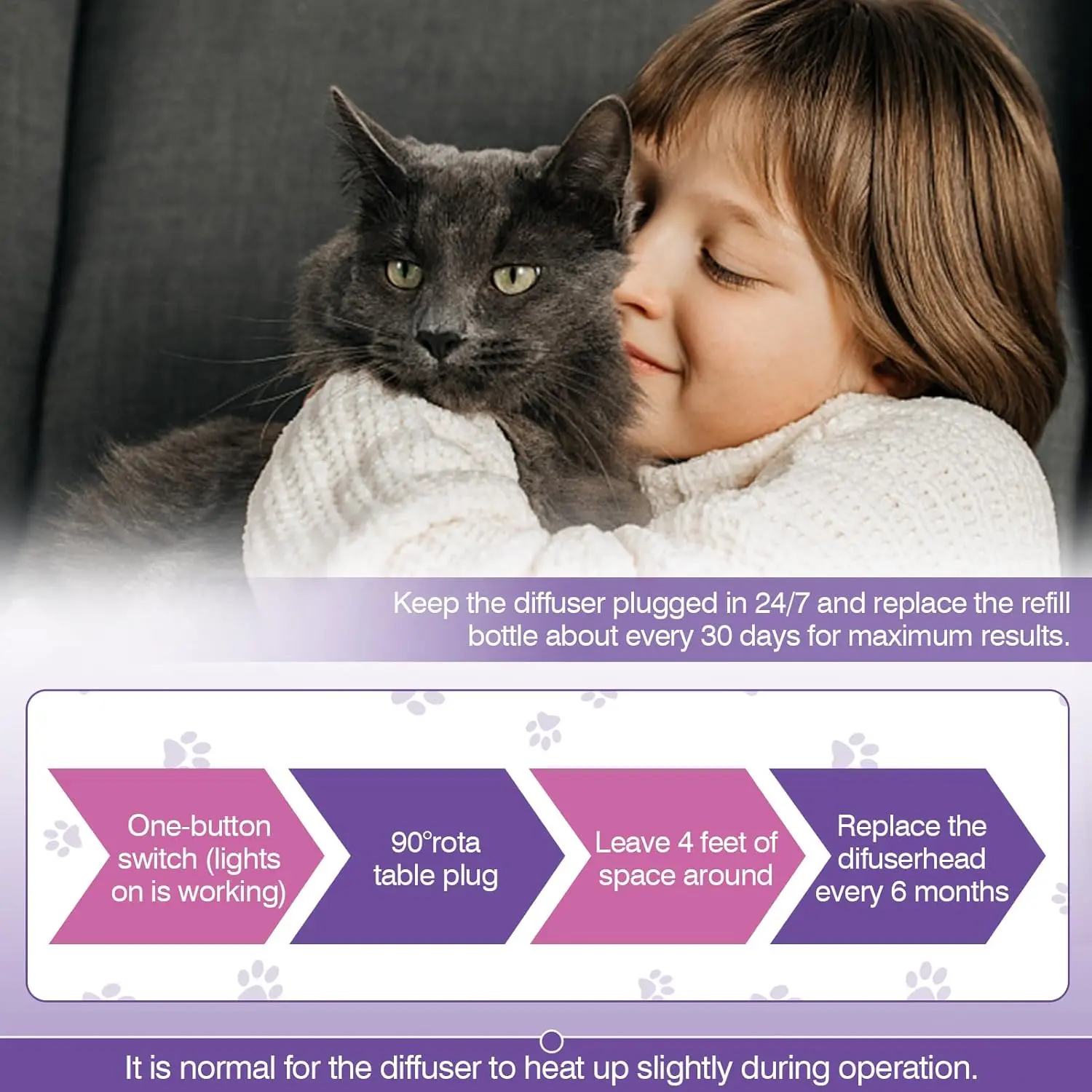 ·[Cat Calming Diffuser-Veterinarian Recommended]Cat pheromones calming diffuser is the veterinarian recommended solution. Pheromone diffuser to calm cats keeps cats safe, happy and calm. Cat diffuser calming helps reduce tension, fights and stress among cats. Calming cat diffuser creates a calm and relaxing environment for cats. Great for calming new kittens or adopting cats as a cat pheromone diffuser to calm cats. Multi-cat households can live in harmony with a cat calming diffuser