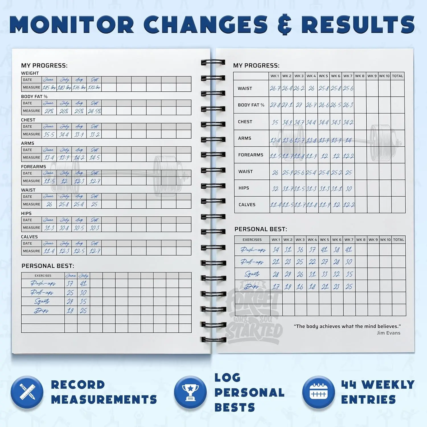 ·IDEAL SIZE - Lightweight, portable, and easy to carry to gym; Standard A5 page size (6” x 8”) provides ample space to note down every detail of your workout w/ clarity; Personalized fitness journal to help you take short notes
