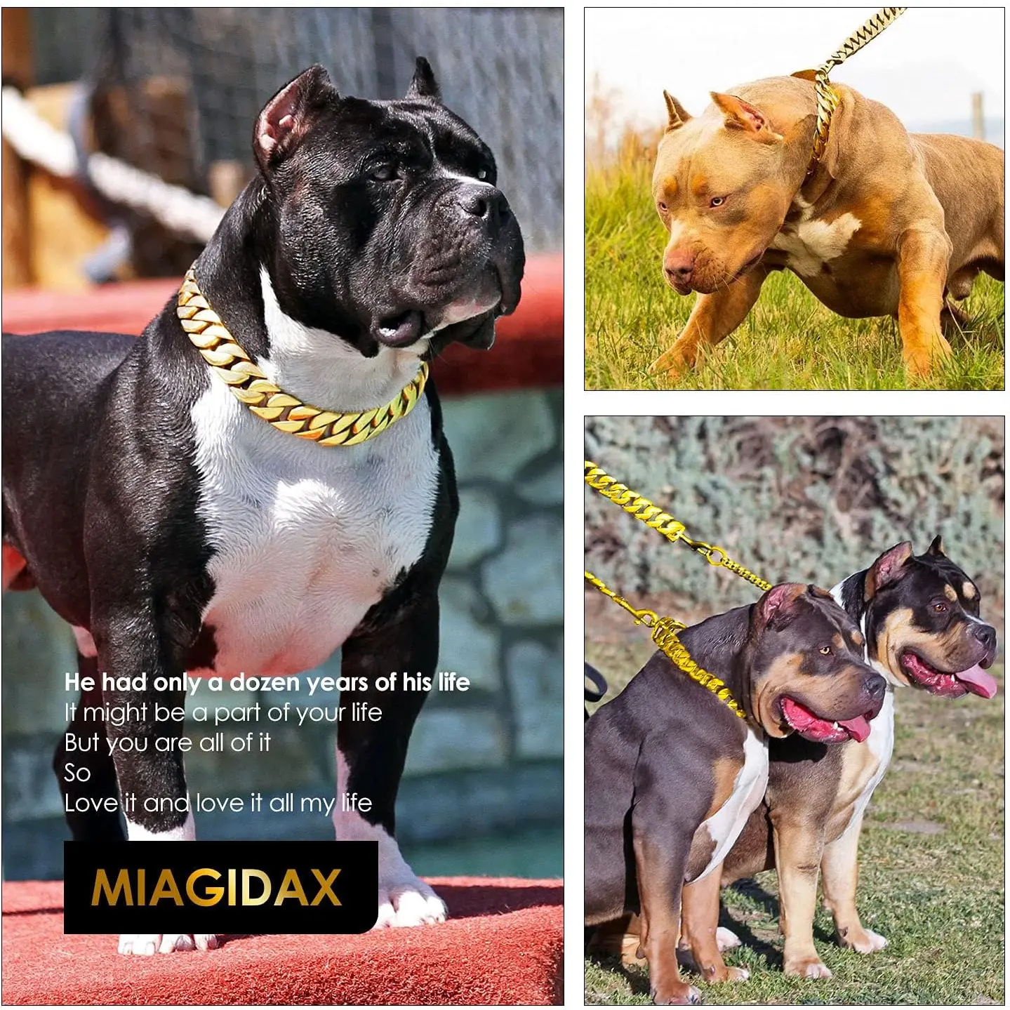 ·🦮Suitable Breeds: The dog gold chain is designed for large active breeds such as Bulldogs, American Bullies, German Shepherds, Huskies, Newfoundlands, St. Bernards and English Bulldogs, and it can handle rough breeds. We are confident that your dog will be proud to wear this dog choker collar.
