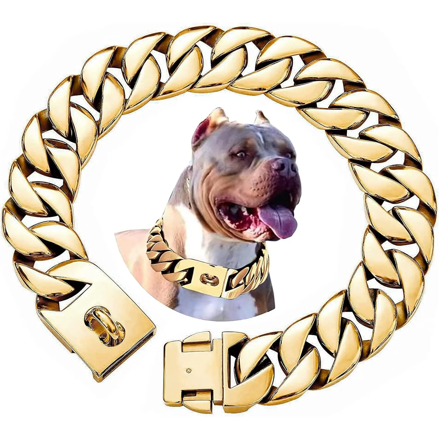 ·Smooth The Surface Of Your Dog: High polished craftsmanship makes the surface shiny and smooth , it will never irritate the skin of your pet. The smooth gold dog chain will make your dog feel comfortable.