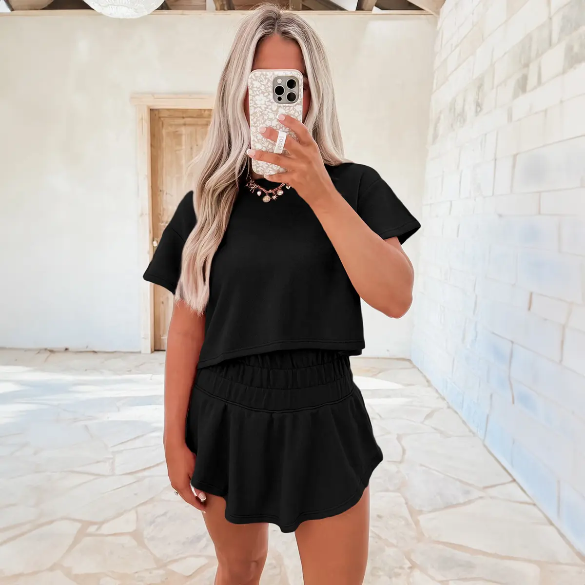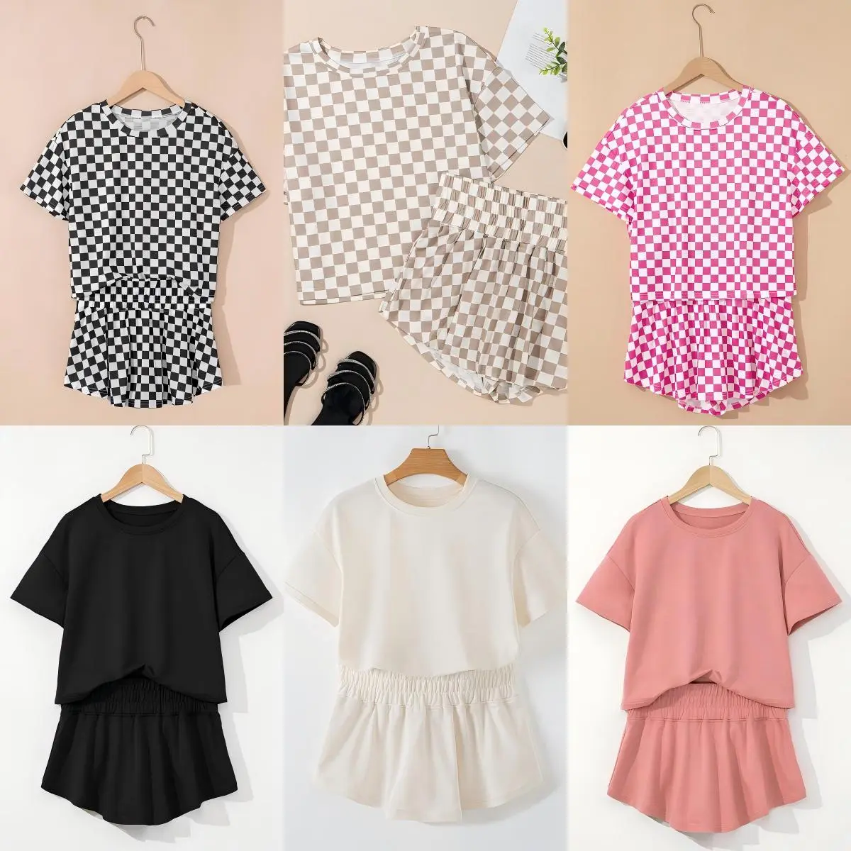 ยทAvailable in the โflattering silhouetteโ, this two-piece skort set comes in both โsolid color and checkered optionsโ to โcater to diverse tastesโ. The โsmocked waistbandโ effectively โsmooths the midsection without constrictionโ. The shorts cleverly โfeature a skirt-like appearance at the frontโ, offering โall the style of a skirt with the practicality and coverage of shortsโ โ โchic and worry-freeโ!