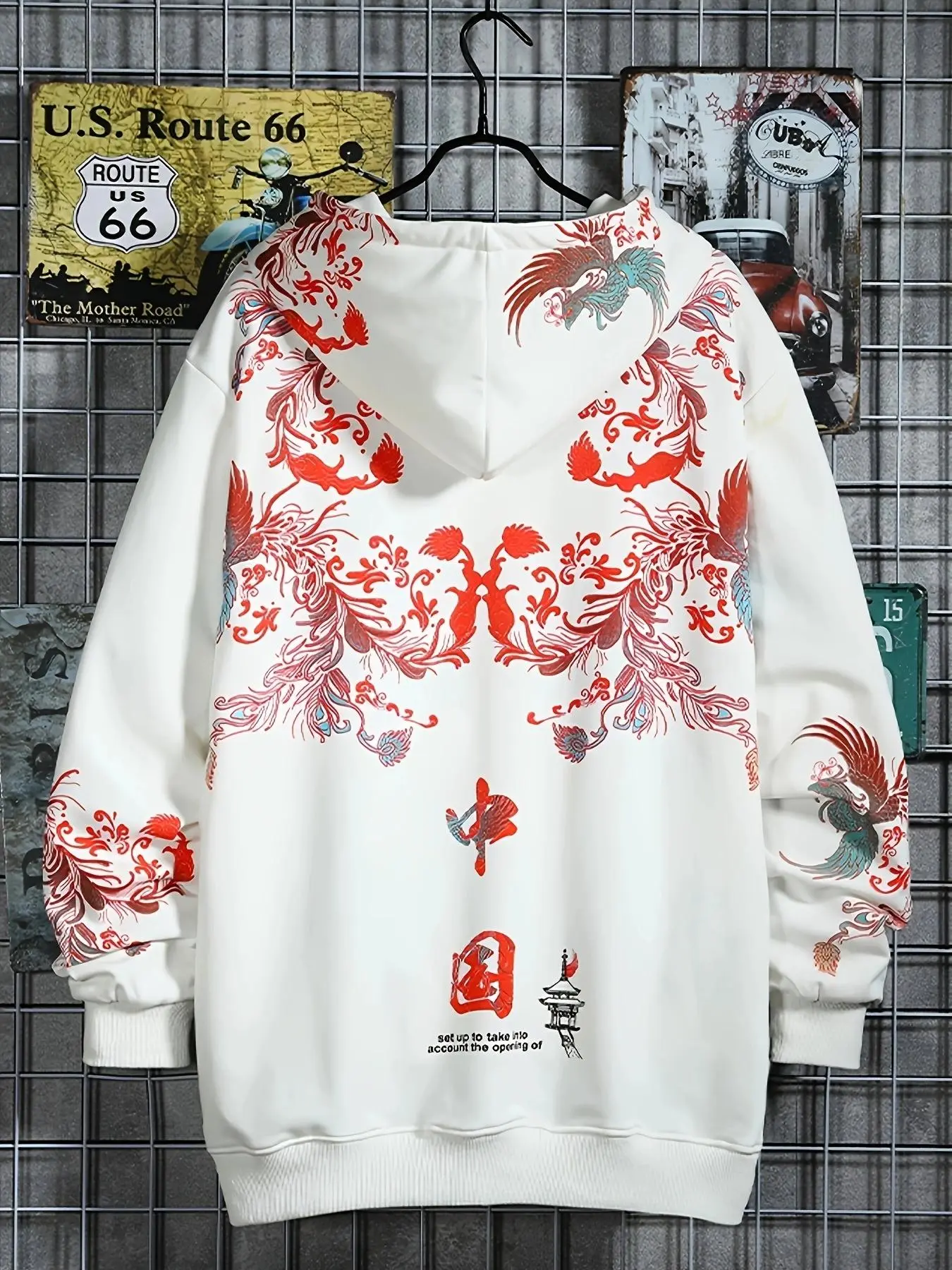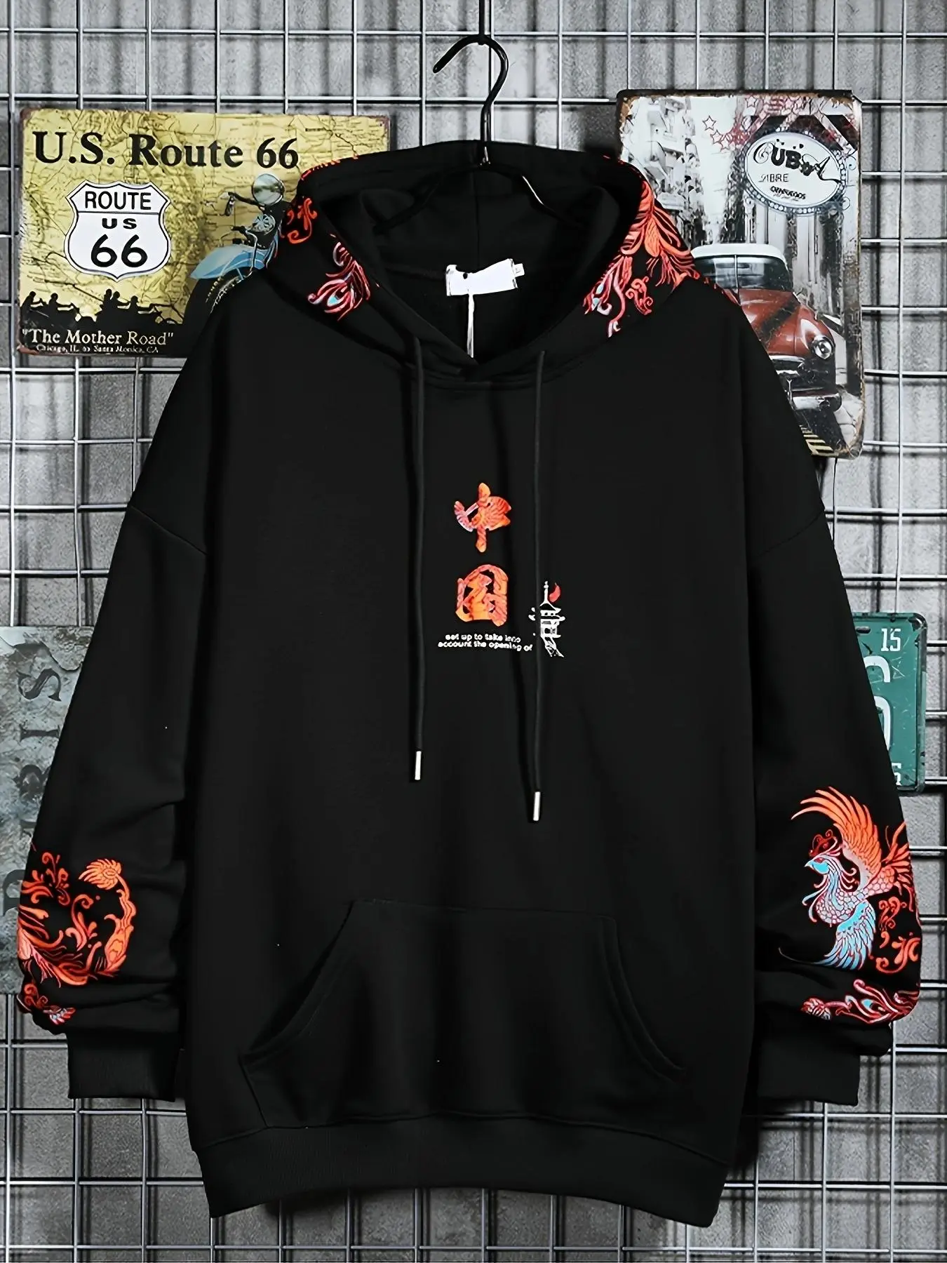 Men's Chinese Phoenix Graphic Print Drawstring Hoodie, Loose Casual Fashion Long Sleeve Kangaroo Pocket Design Hooded Sweatshirt for Daily Holiday Outdoor Wear, Men Clothes for Spring & Fall