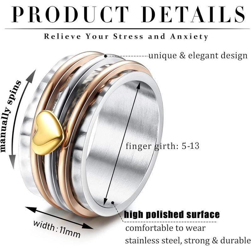 Ease anxiety: If you're used to pulling your hair or picking your nails when you're upset or anxious, then our anxiety Ring will help you correct bad habits, eliminate stress, and reduce anxiety. Exquisite and unique, attract more attention.