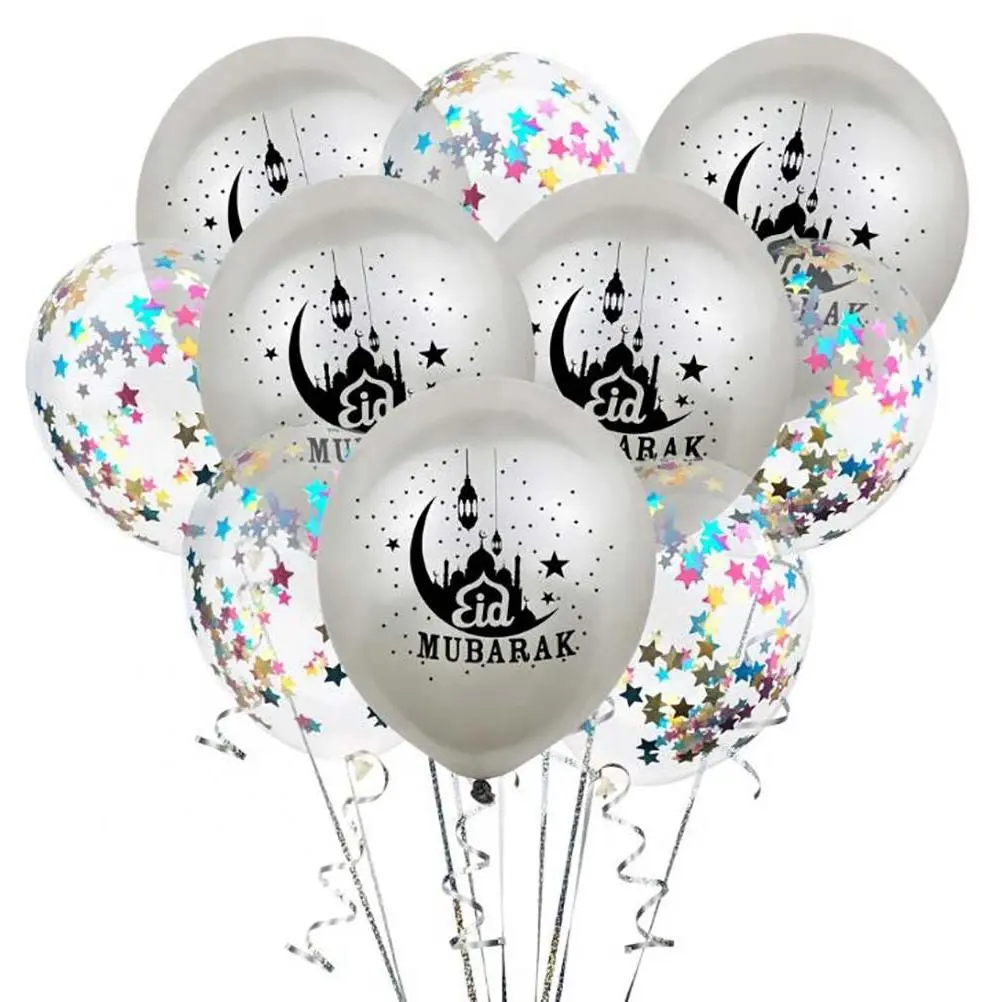 This incredible 10 pack of balloons features 5 silver balloons with "Eid Mubarak" displayed so brilliantly front and center, and 5 clear balloons with multicolored detailing! It's a great way to get your friends and family excited for the festive season!