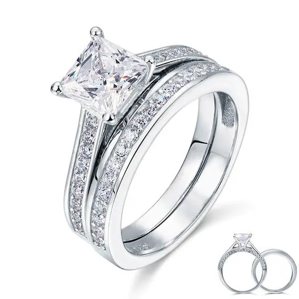 PAVOI 14K Gold Plated 3.5CT Square Radiant Cubic Zirconia Engagement and Promise Ring for Women - Hidden Halo Ring
