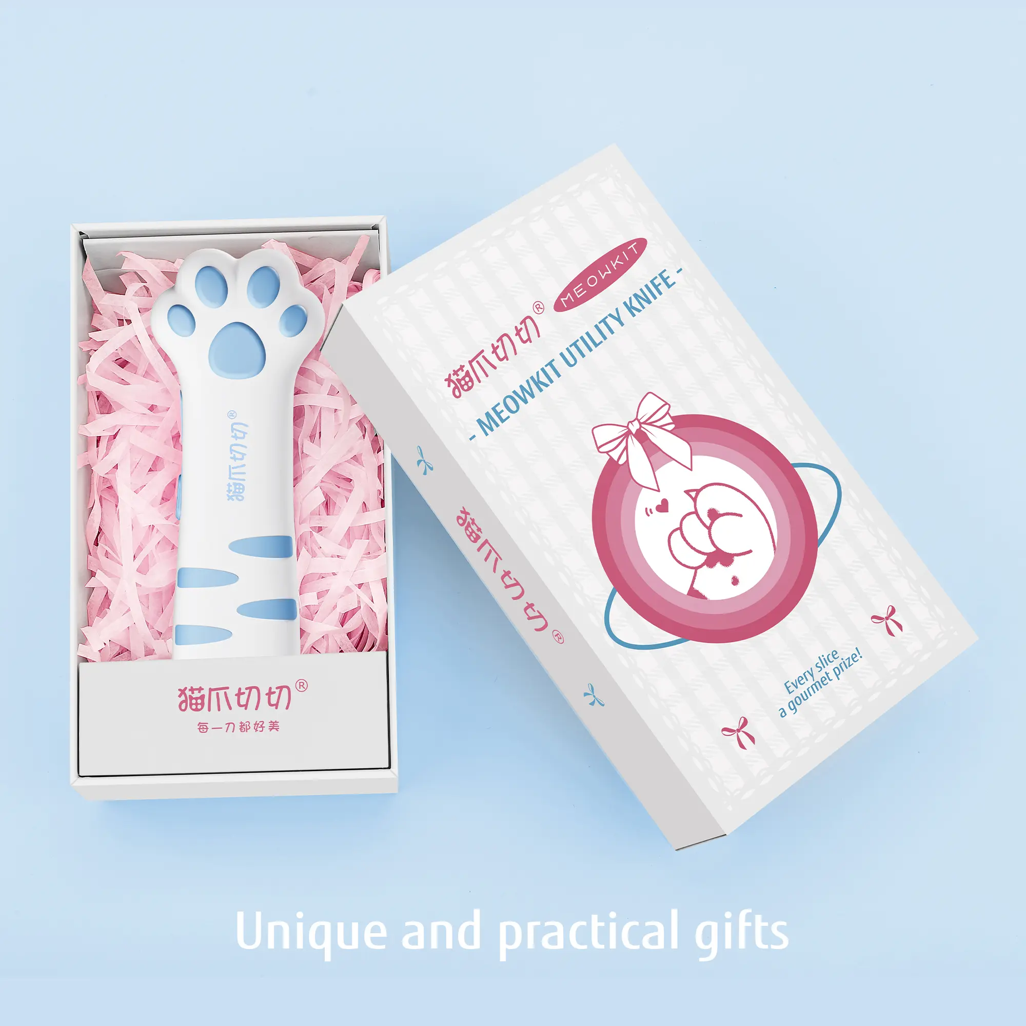 Cuteness and Novelty 5/5😍 functionality 3/5. Maybe it’s the curved blade or the sharpness that makes the blade get jammed and stuck on tape. But it’s definitely fun to use