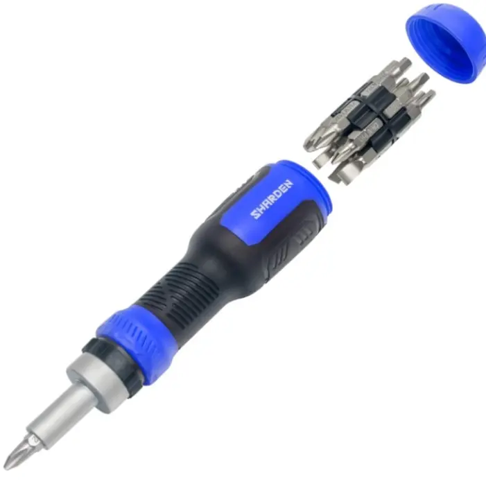 ·【Tool Saver】SHARDEN versatile 13 in 1 multi screwdriver includes a 1/4 inch nut driver and 12 common used screwdriver bits: T15/T20 Security Torx, 4mm/5mm/6mm Flathead, PH1/PH2/PH3 Philips, H4/H5 Hex, and SQ1/SQ2 Square. All the bits needed in one ratchet screwdriver set, reduce the number of tools you must carry