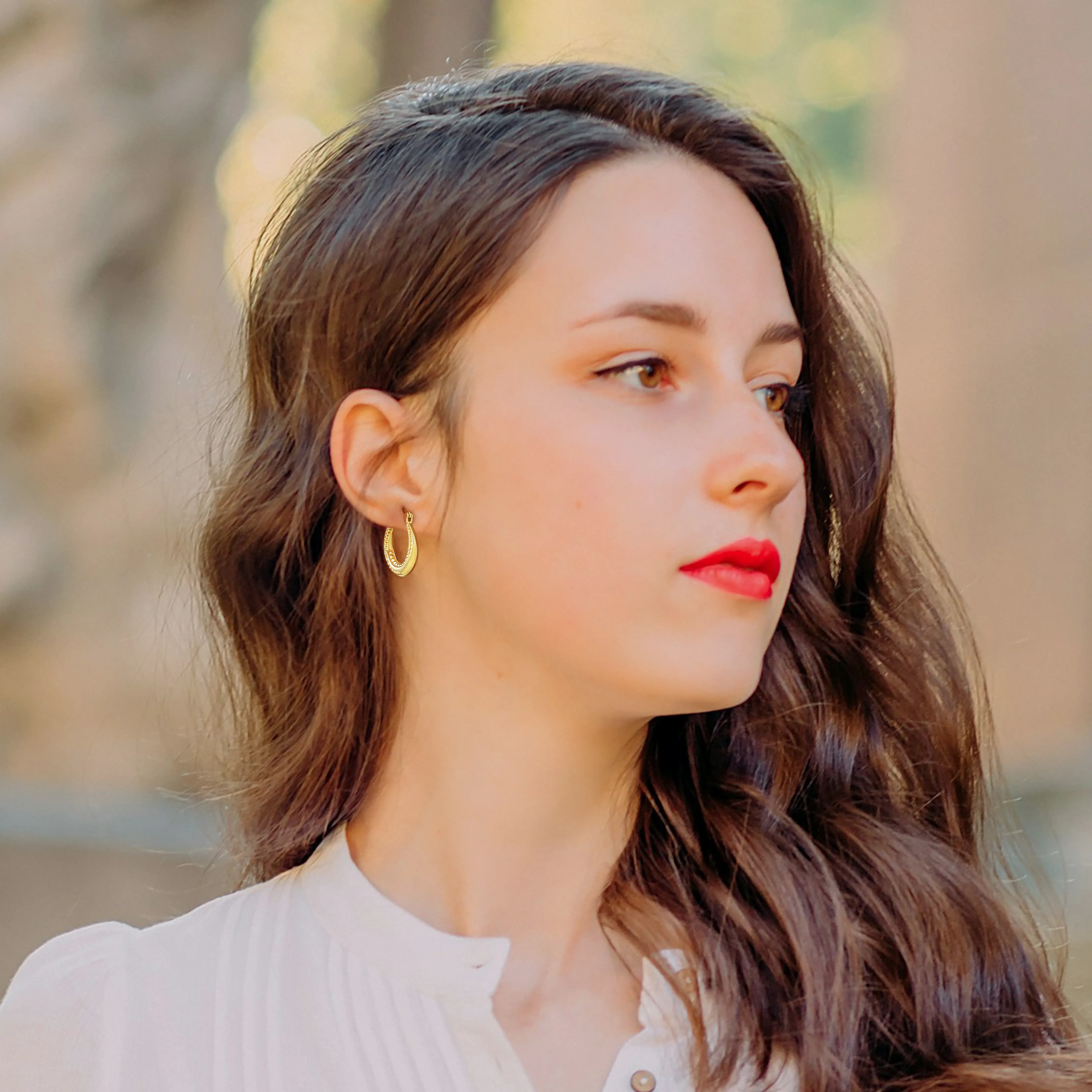 PAVOI 14K Gold Plated Ribbed Hoop Earrings for Women - Chunky Ridge Statement Earrings - Boho Puffy Croissant Huggie Hoops Trendy Gold Jewelry