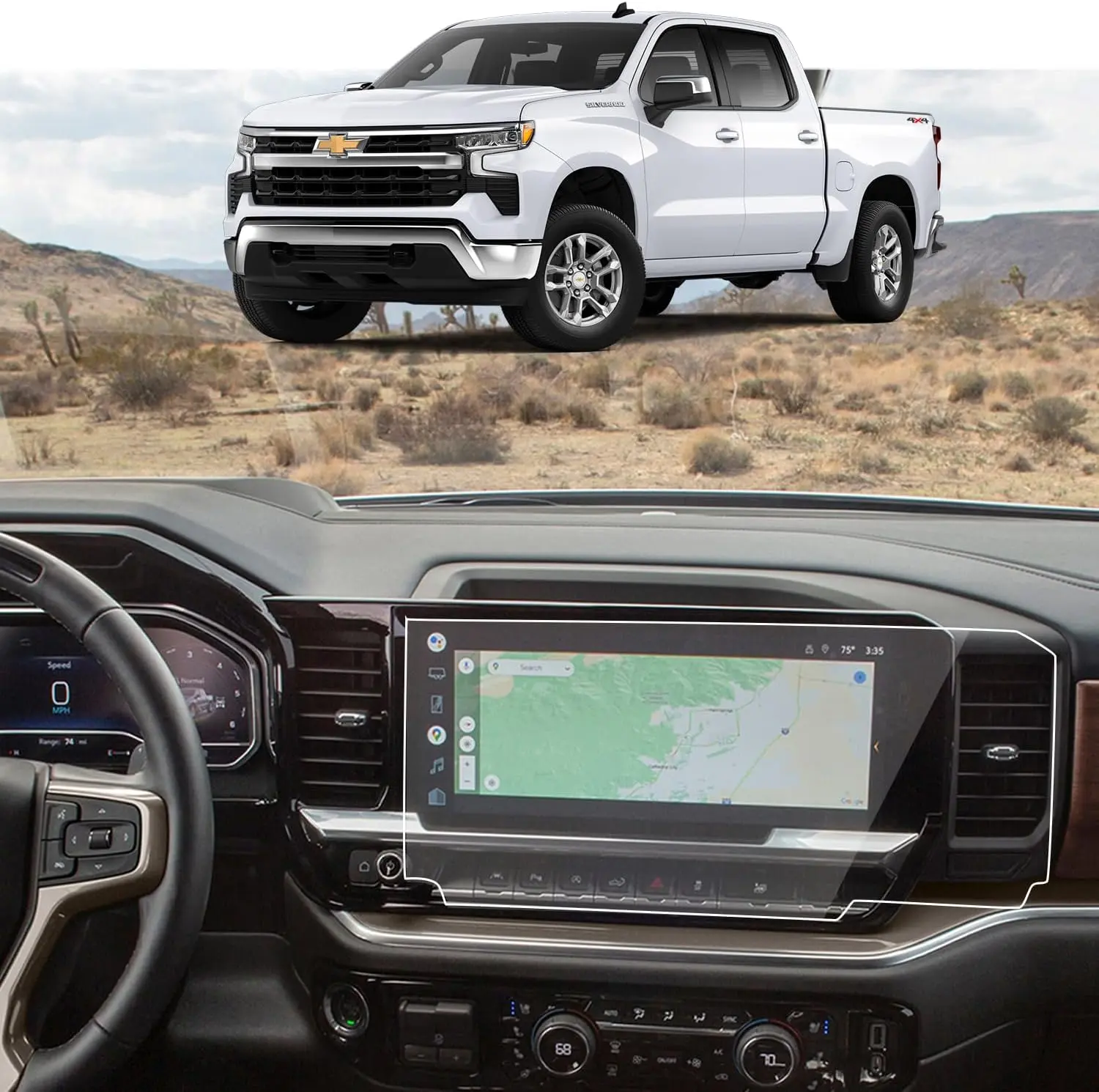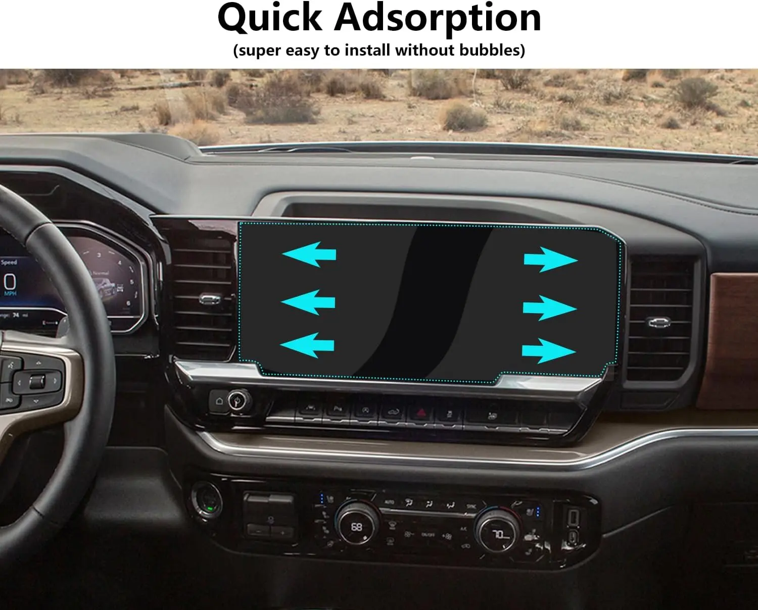 【Enjoy Original Smooth Touch Experience】13.4" 2022-2025 Silverado & Sierra 1500 and New 2024 Sierra & Silverado 2500HD/3500HD car navigation screen protector is designed to enhance the smooth touch and high sensitivity, 0.33mm ultra-thin thickness with high transmittance makes the touch same as the original screen experience. No any influence on the central control touchscreen infotainment system.
