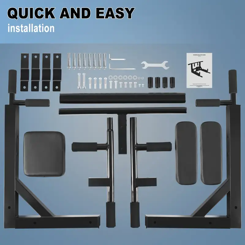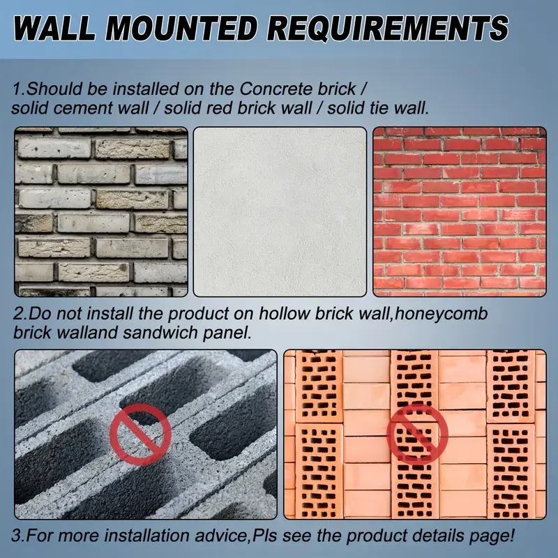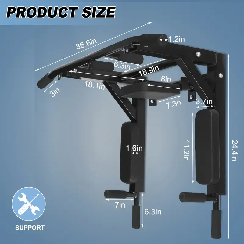 ·Wall Mounted Requirements-- Concrete wall or brick wall is suggested for mounting this pull up bar and dip station. DON'T install on drywall, plaster walls and cavity.