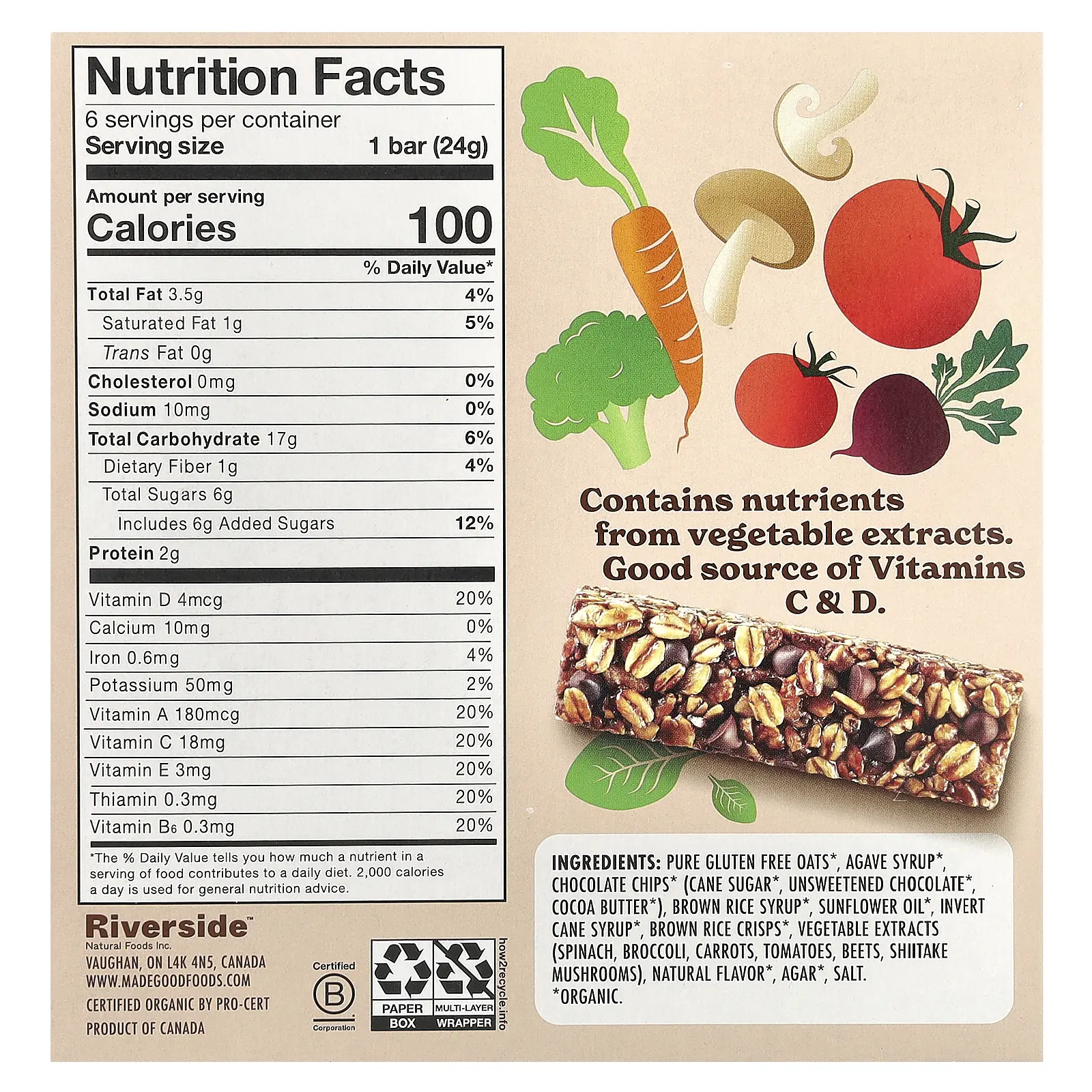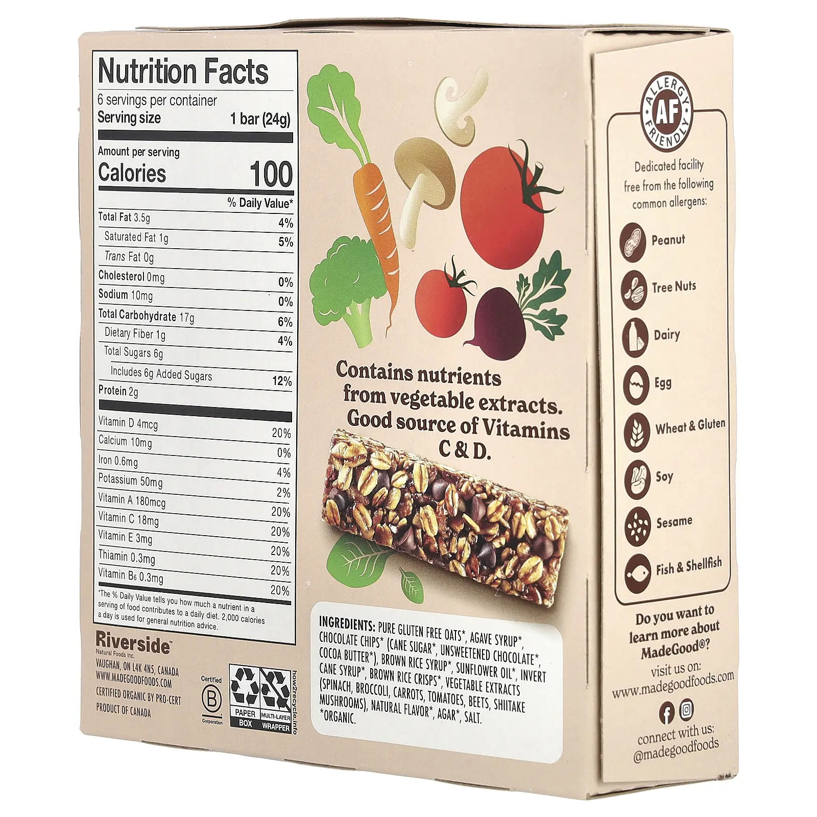 MadeGood Granola Bars, Chocolate Chip, 6 Bars, 0.85 oz (24 g) Each