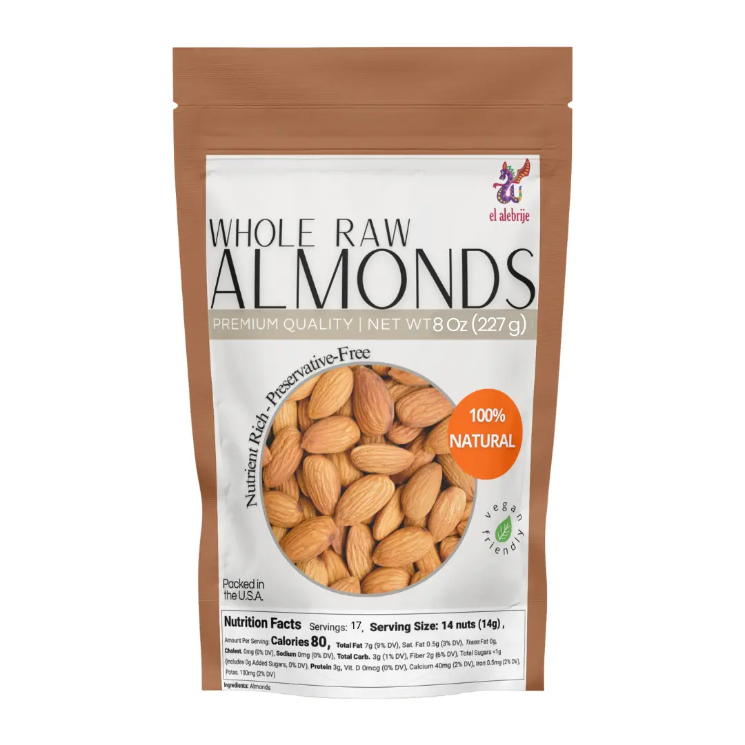 Experience the pure, natural goodness of Whole Raw Almonds from El Alebrije. These premium-quality almonds are carefully selected to bring you a nutritious and delicious snack packed with wholesome benefits.