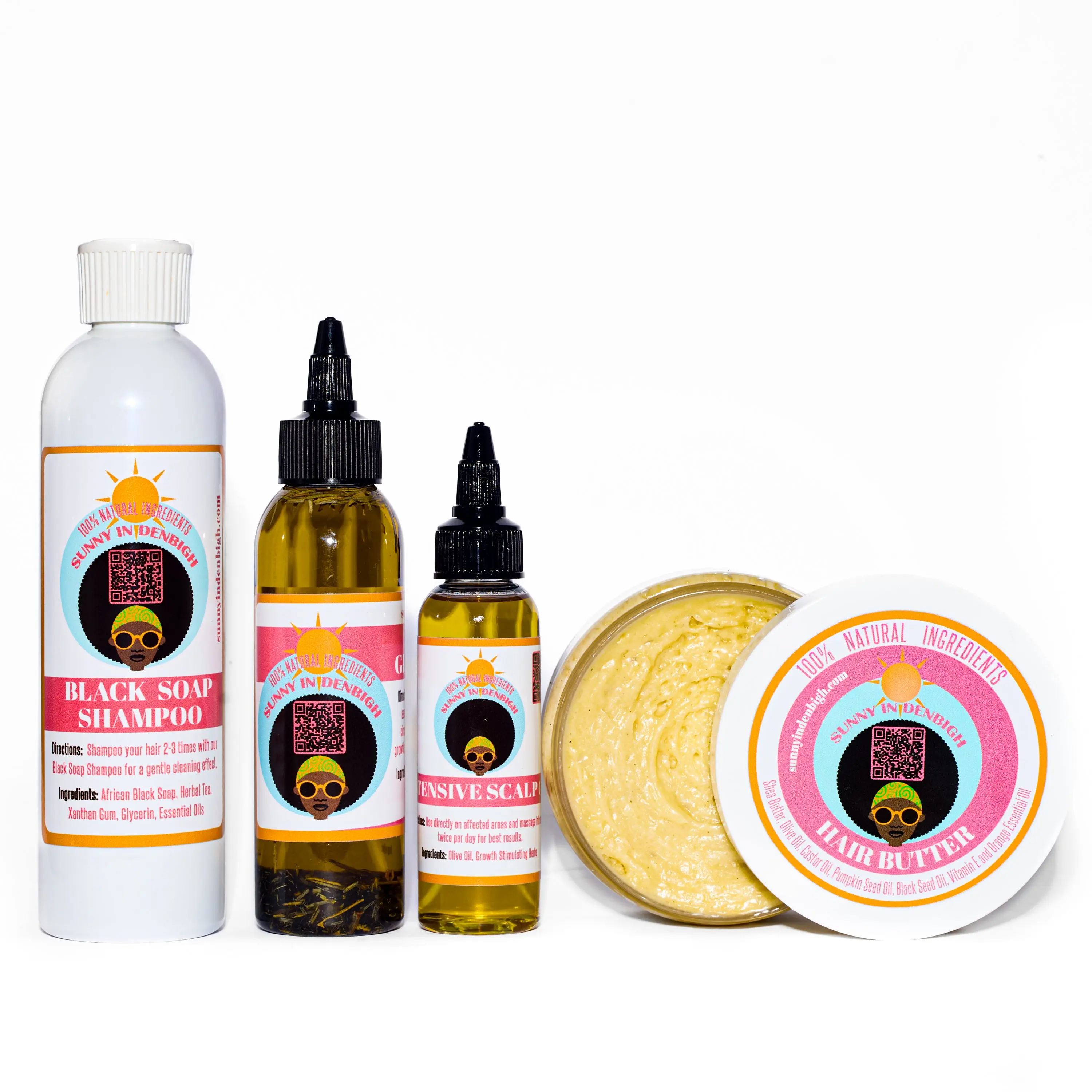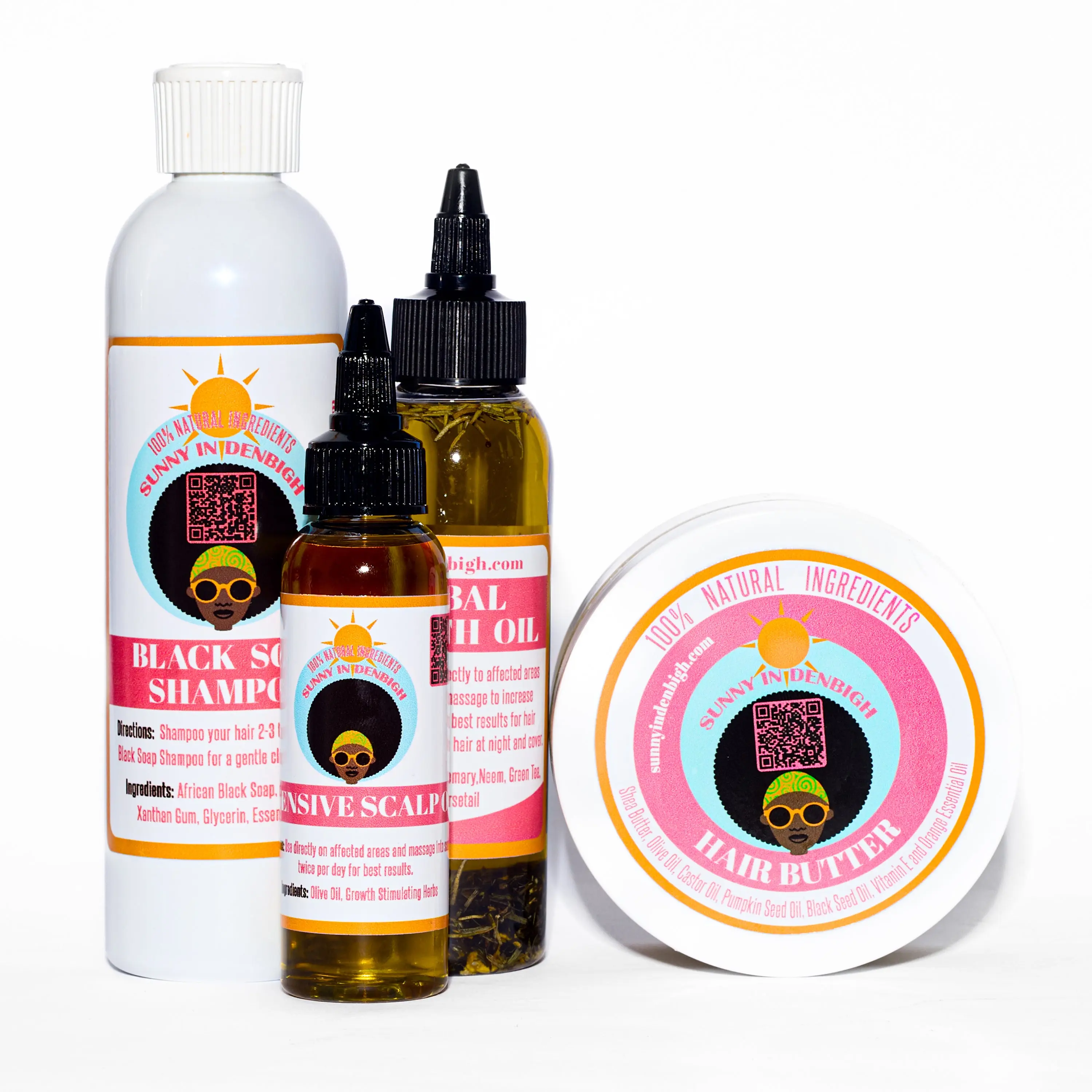 Use them individually or as a complete set, either way they are enriched with all-natural oils, herbs, and butters that provide intensive growth. Made with natural  ingredients that have been proven to stimulate follicular activity and increase blood flow. Our Growth Bundle has the perfect blend of products to enhance hair growth and overall hair health.