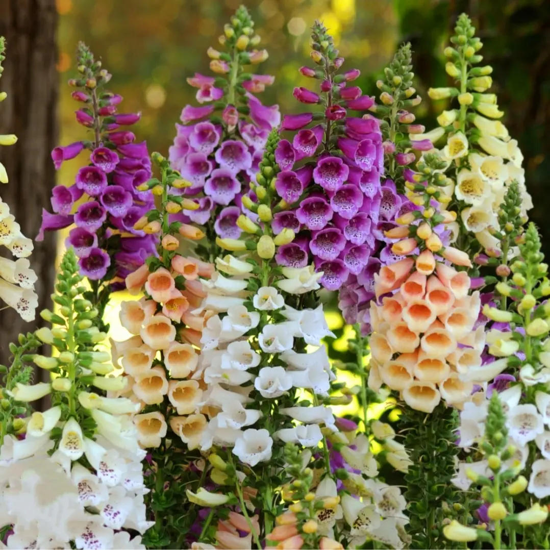 Foxgloves are an old biennial plant that produces leaves in the first year and flowers in the second. can grow up to 6 feet tall, so plant them behind flower beds, next to the house or fence, or as a large planting.