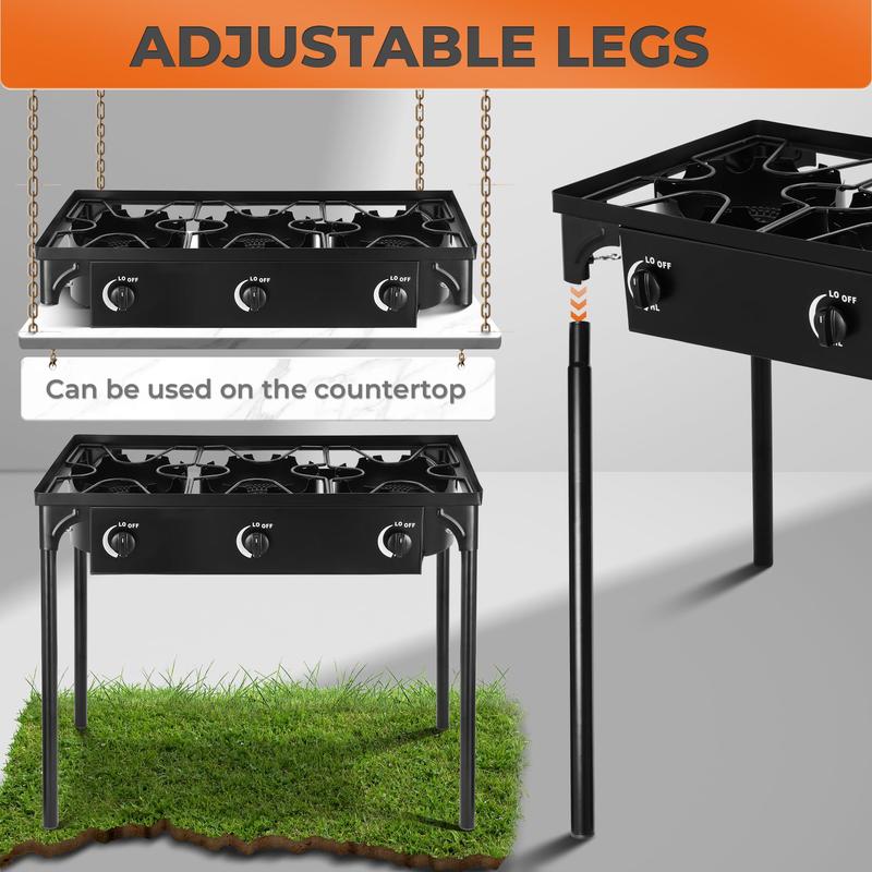 ·【DURABLE IRON MATERIAL】The double burner outdoor stove is power coated with weather-resistant and it's made of reinforced iron to ensure sturdiness and stability, durable so that it can ensure a long time outdoor using