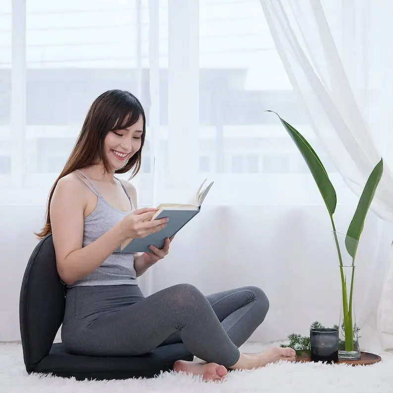 Our adjustable meditation floor chair provides soothing back support and promotes good posture for maximum comfort and an extended pain-free experience.