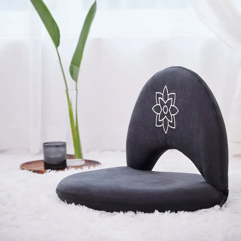 Gray Small Floor Chair, Foldable Meditation Chair, Floor Cushion, Meditation Cushion with Back Support, Yoga Gifts