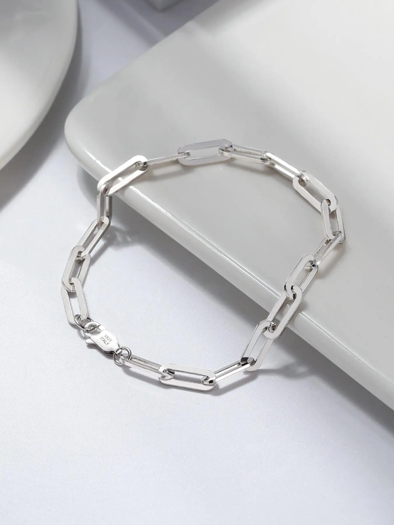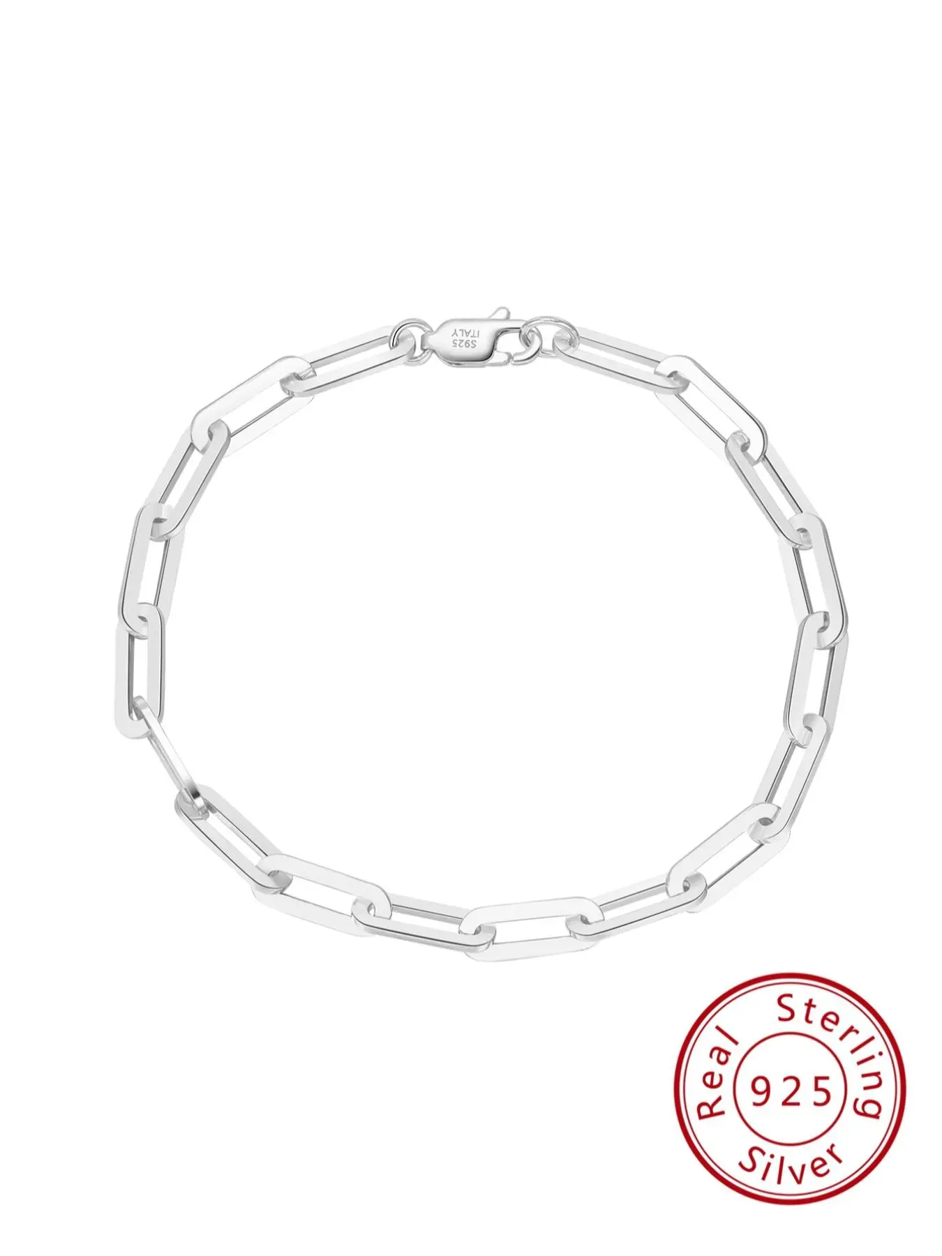 925 Sterling Silver Simple Paperclip Chain Bracelet, Fashionable Jewelry for Women & Men, Trendy All-match & Exquisite Jewelry for Birthday Gift, High Quality Bracelet