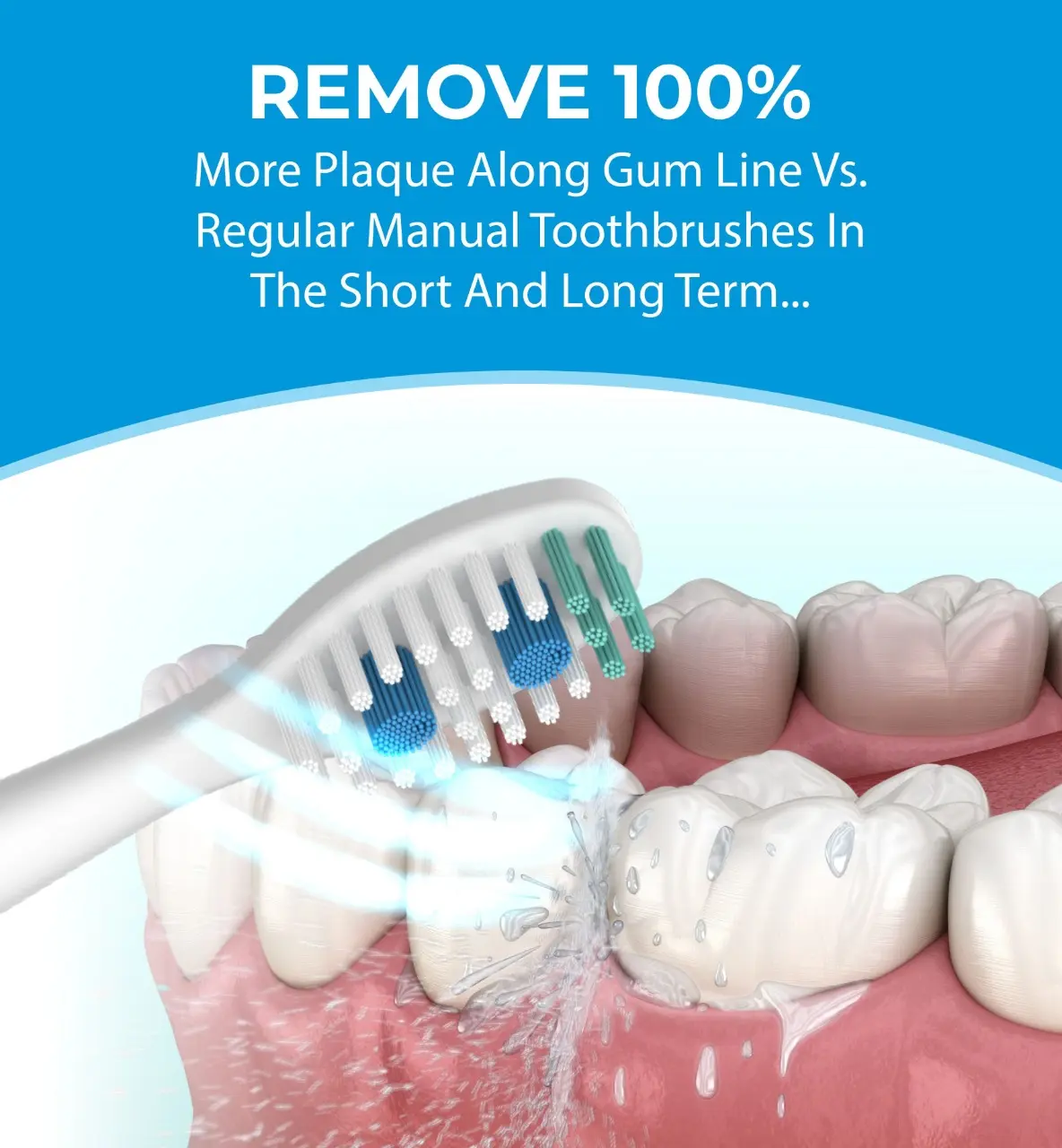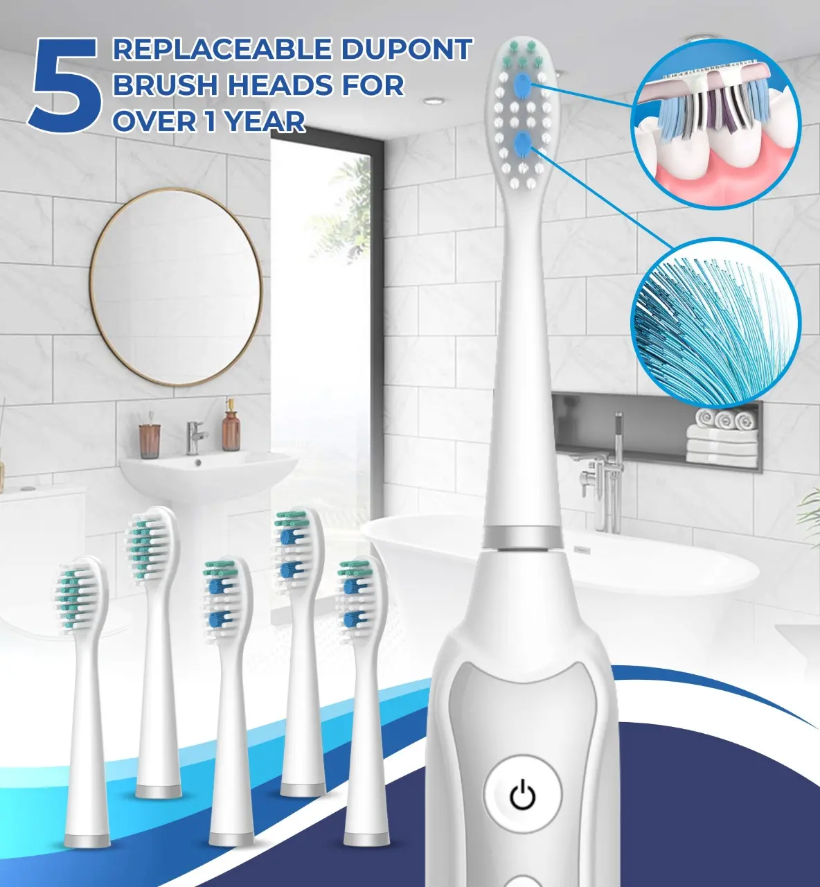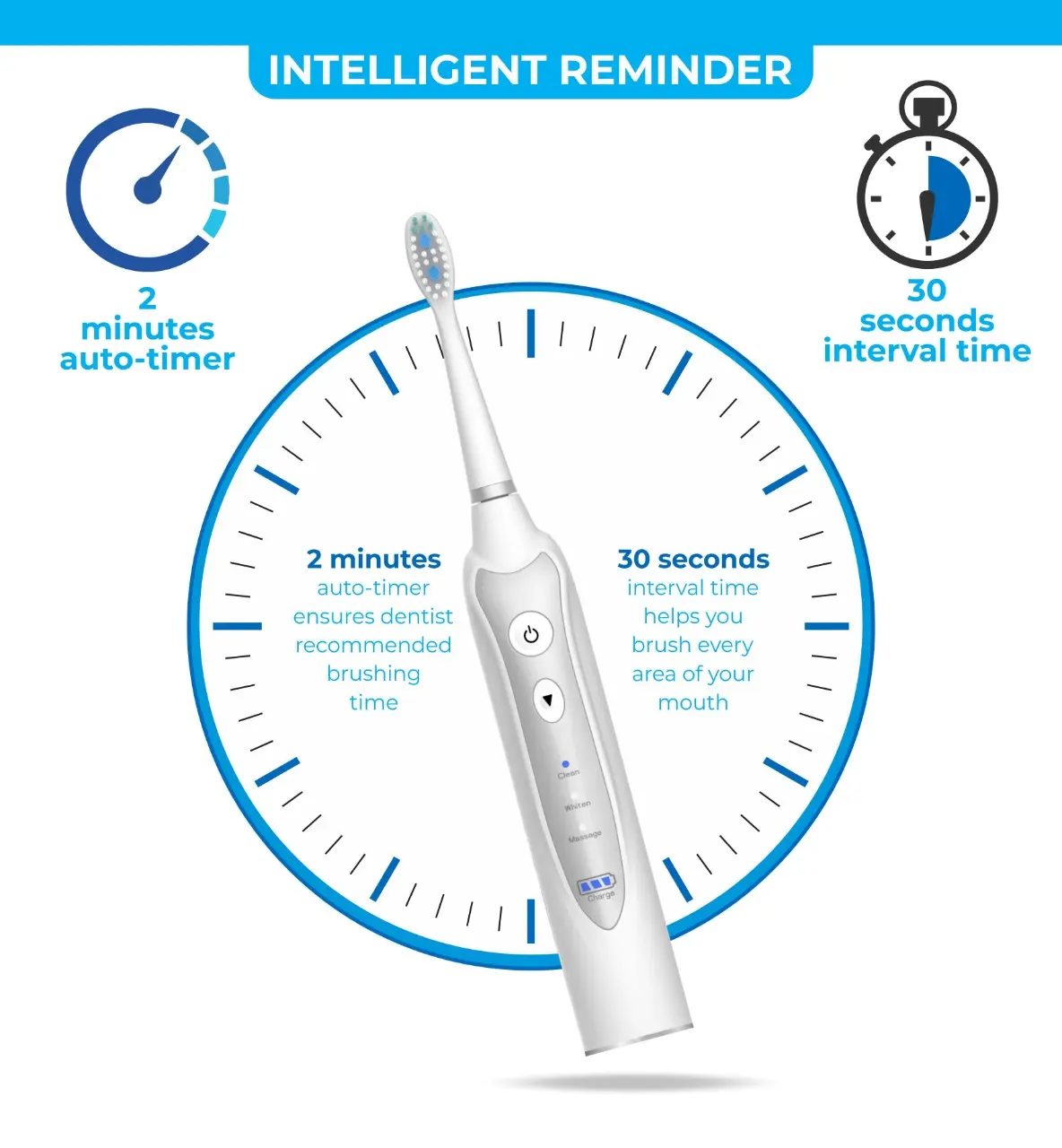 ·INTELLIGENT REMINDER, WATERPROOF TECHNOLOGY: Smart 30-second reminder. This electric toothbrush automatically halts briefly after every 30 seconds to help you change quadrants and adjust the brushing direction. The waterproof technology in this portable toothbrush soft ensures protection against water splashes and enables you to use them more freely under wet conditions. Waterproof, Battery toothbrush for adults with an ergonomic and no-slip handle.