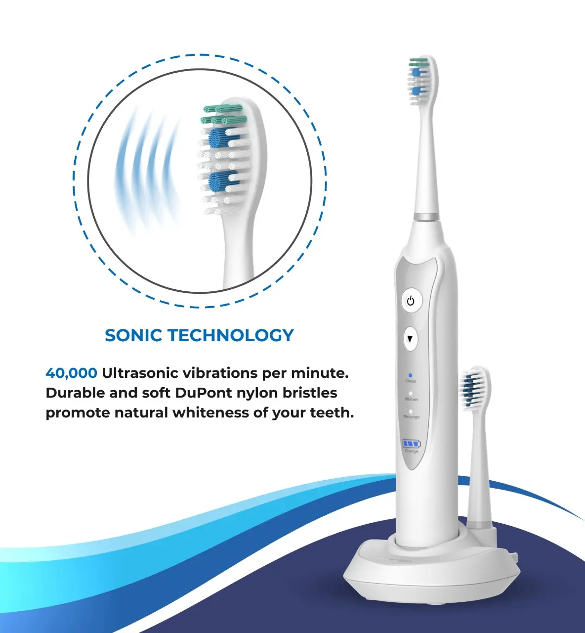 NetGen Sonic Electric Toothbrush for Adults with 5 Toothbrush Replacement Heads, 3 Brushing Modes & 2 Minutes Built-in Timer, Travel Toothbrushes with Inductive Charging, Rechargeable toothbrush - White - Oral