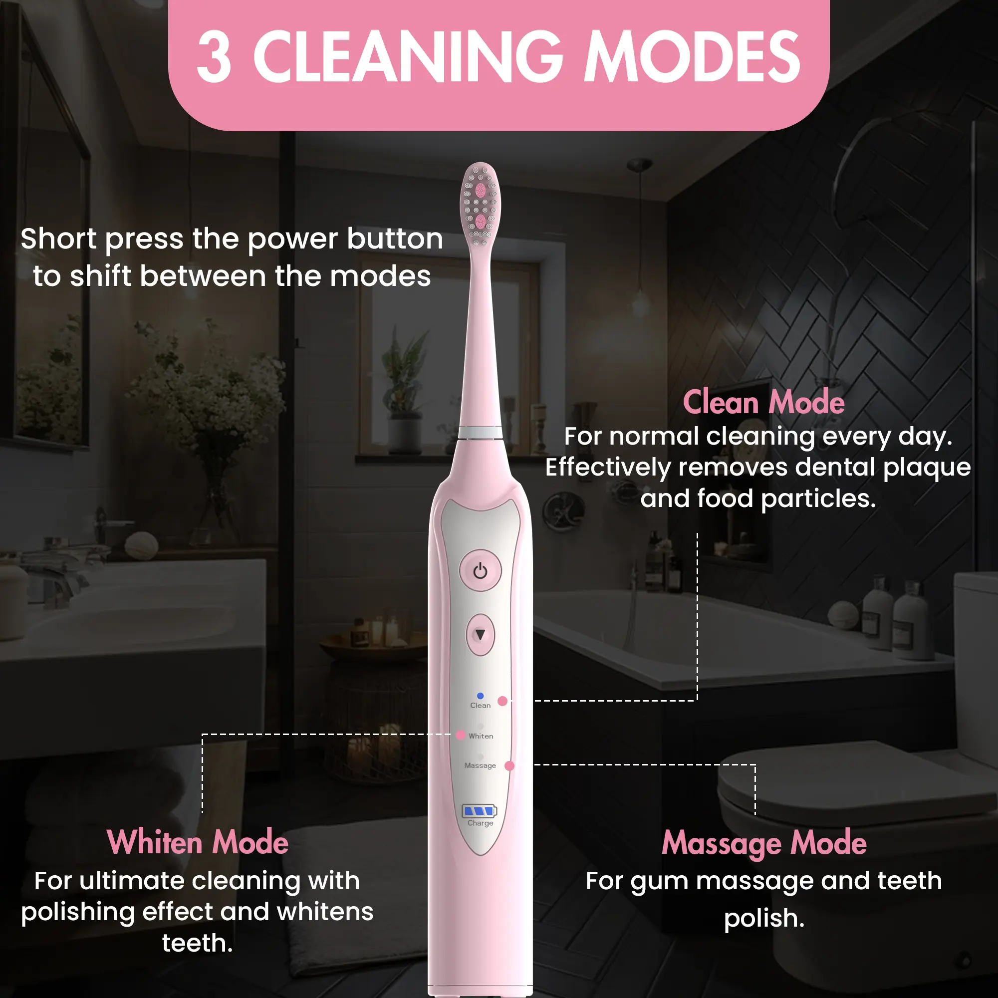 ·THREE CLEANING MODES FOR COMPREHENSIVE CLEANING: This toothbrush quickly adapts to the different types of cleaning requirements with its three distinct cleaning modes; Clean, Whiten, and Massage. This battery powered toothbrush deep cleans your teeth and gums and removes all kinds of stains and plaque. Get a shining smile and raise your confidence.