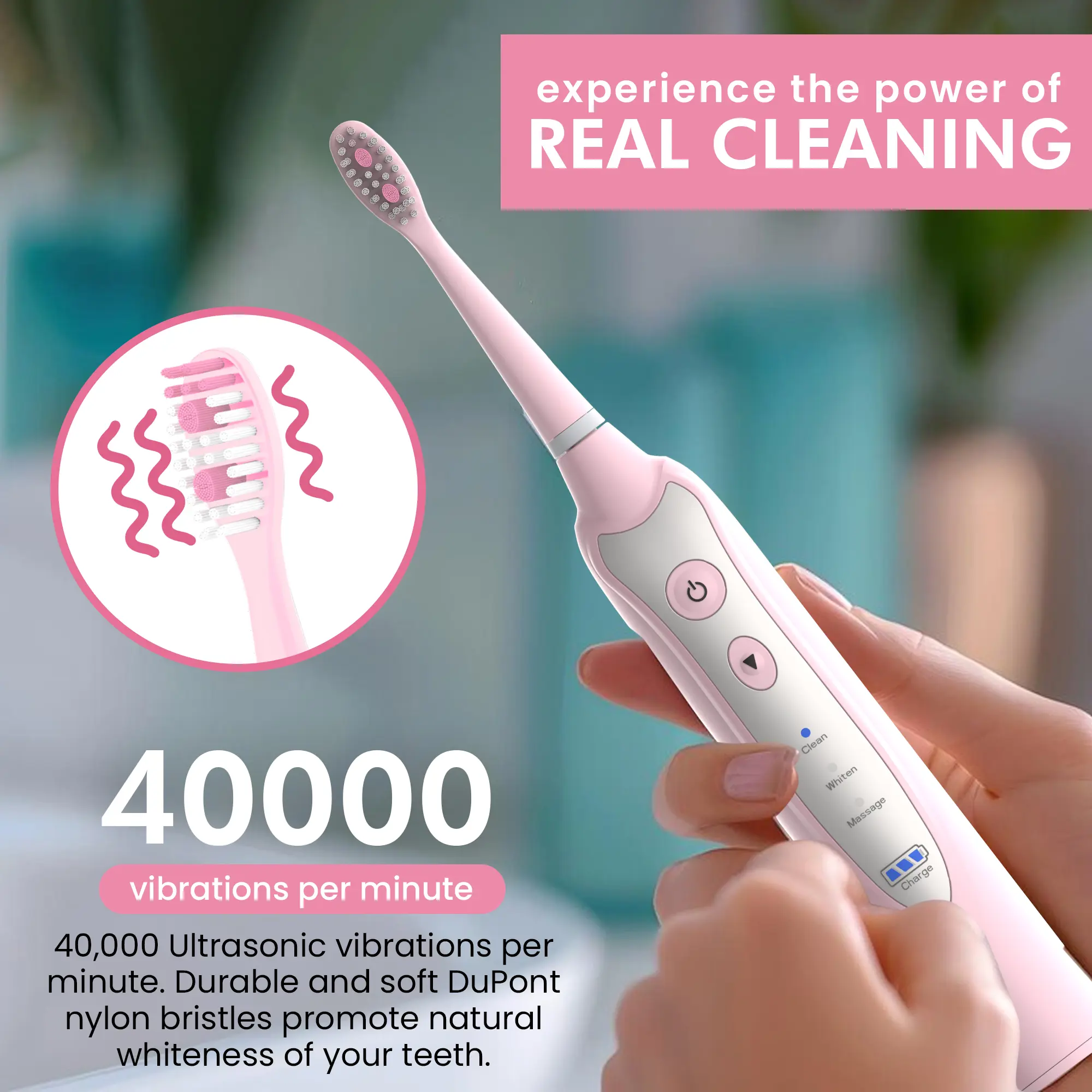 ·PORTABLE & CONVENIENT, IDEAL SIZE FOR TRAVEL: Feel the efficacy of ergonomic design and shape with this portable toothbrush. Enjoy the convenience, this travel electric toothbrush brings into your life with its well-contoured handle and toothbrush heads. Ideal size for travel and on-the-go usability. Our Rechargeable toothbrushes for adults feature an anti-slip handle and high-quality bristles for enhanced durability and superior performance.