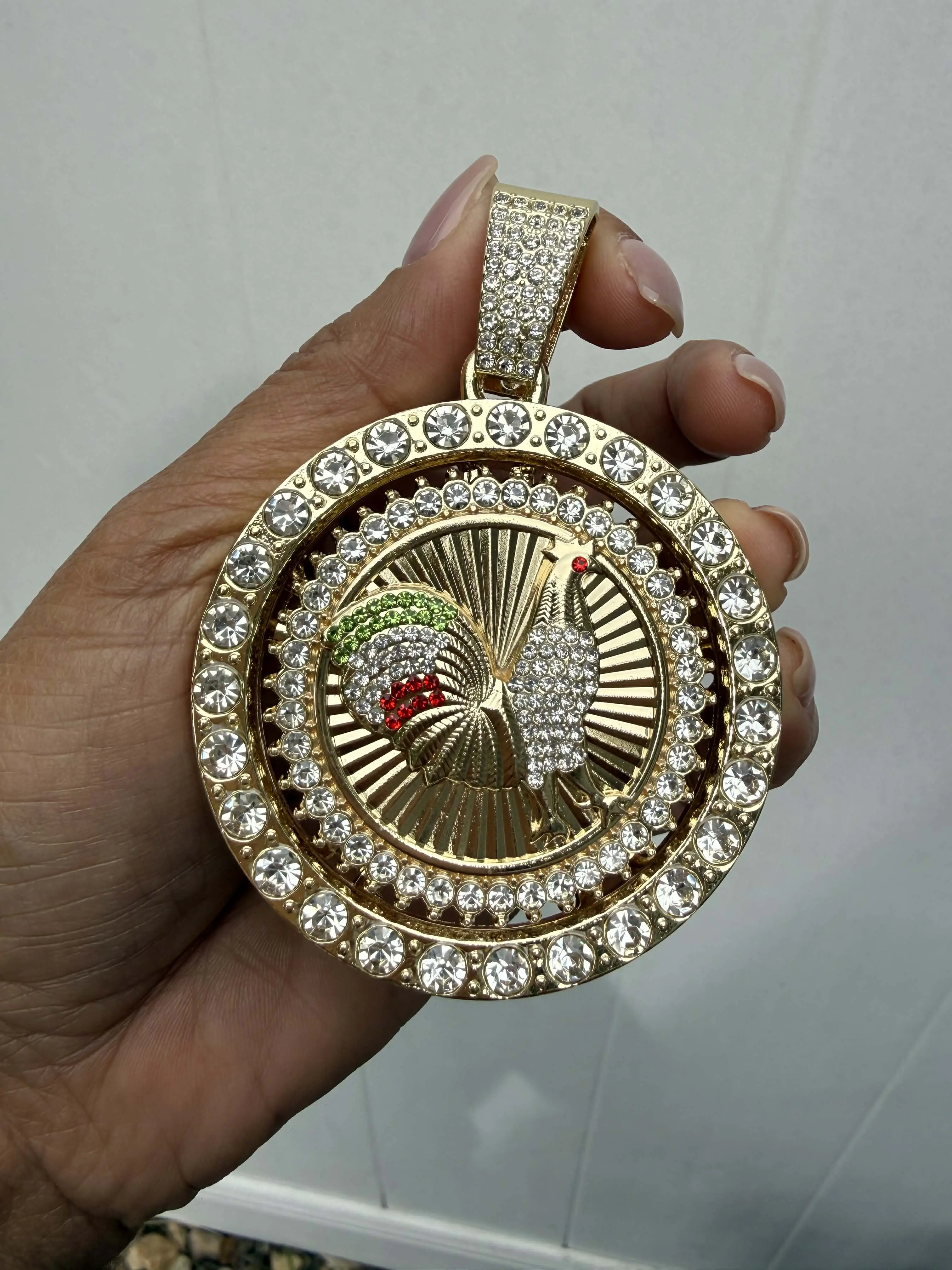 🐓 14K GP Rooster Coin Huge Pendant 🐓
