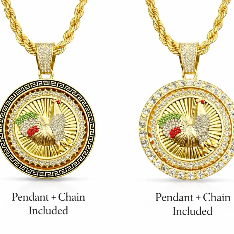 ·Detailed Rooster Coin: This pendant showcases a meticulously crafted rooster coin. 🌟