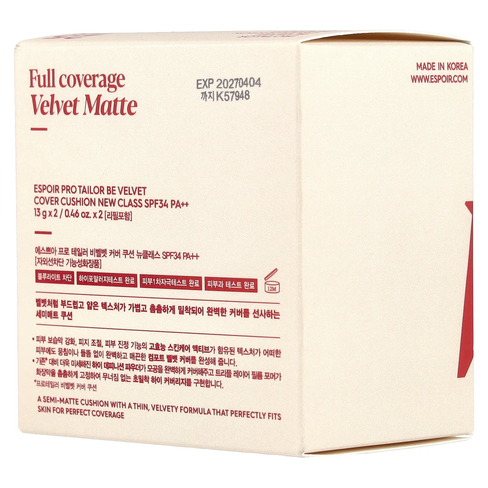 Espoir Pro Tailor Be Velvet Cover Cushion New Class, SPF 34 PA++, 25 Tan, 2 Count, 0.46 oz (13 g) Each