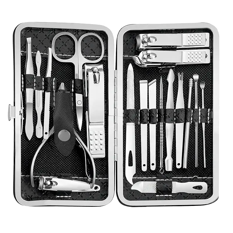 The XL 19pc Manicure Set is a comprehensive grooming solution, featuring a variety of tools for nail, facial, and foot care. Its versatility caters to a wide range of personal grooming needs.
