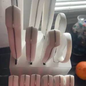 Son iguales ala foto están muy bonitos y se ven que traen bastante filo por el precio son de muy buena calidad Material: Duro y fuerte. Diseño: Hermosos colores.
