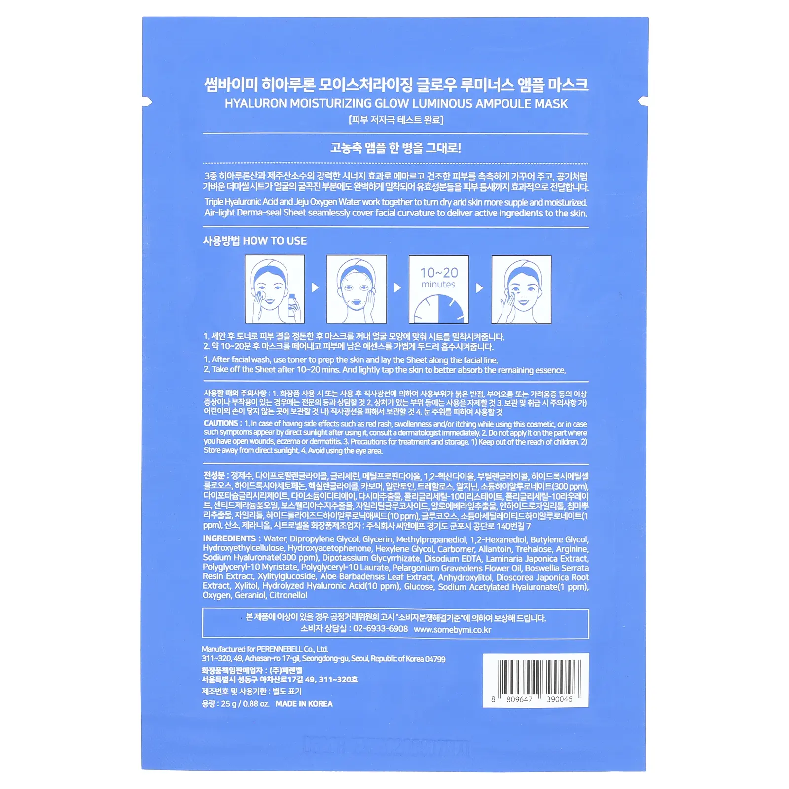 SOME BY MI Hyaluron Moisturizing, Glow Luminous Ampoule Beauty Mask , 1 Sheet Mask, 0.88 oz (25 g)