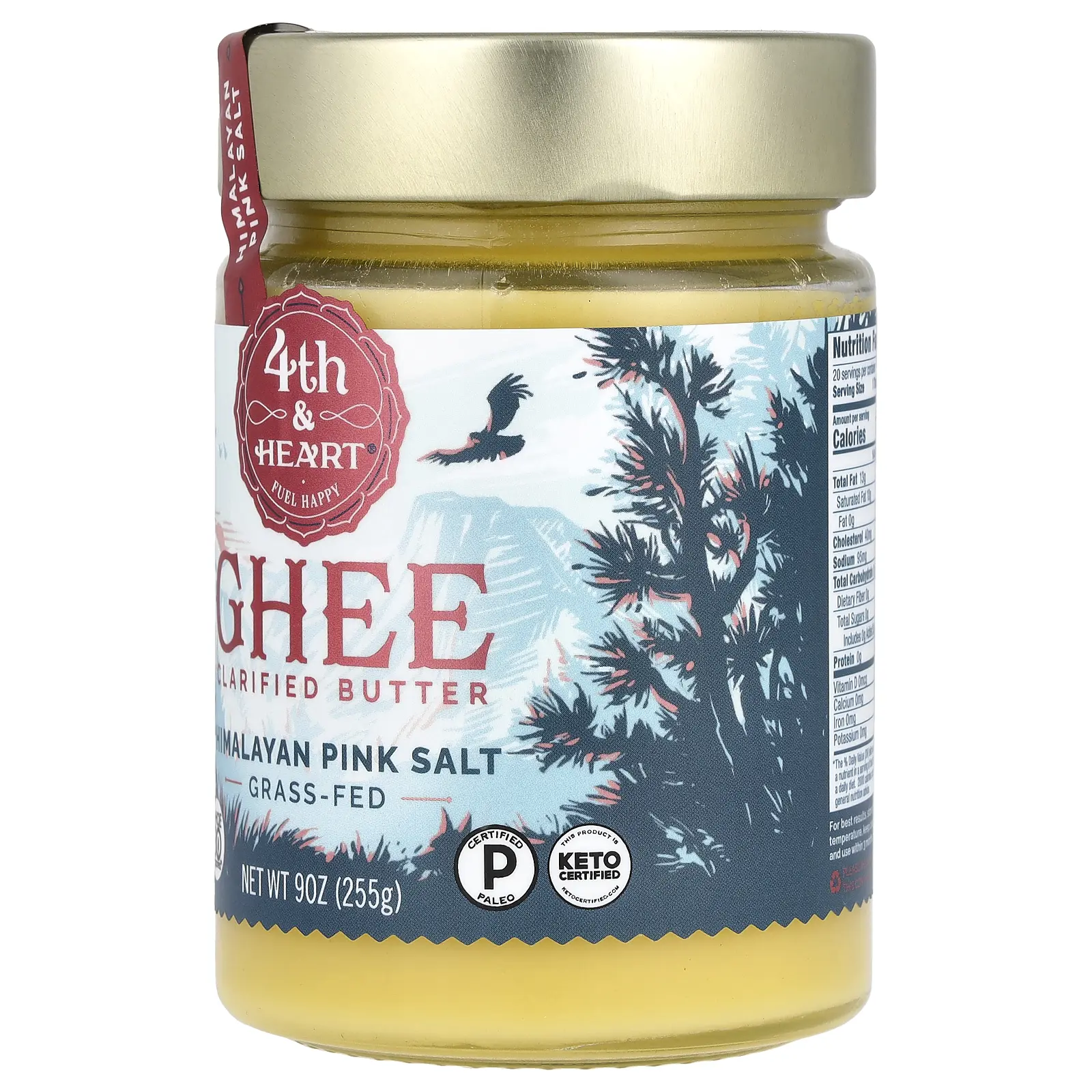 4th & Heart Ghee Clarified Butter, Grass-Fed, Himalayan Pink Salt, 9 oz (225 g)