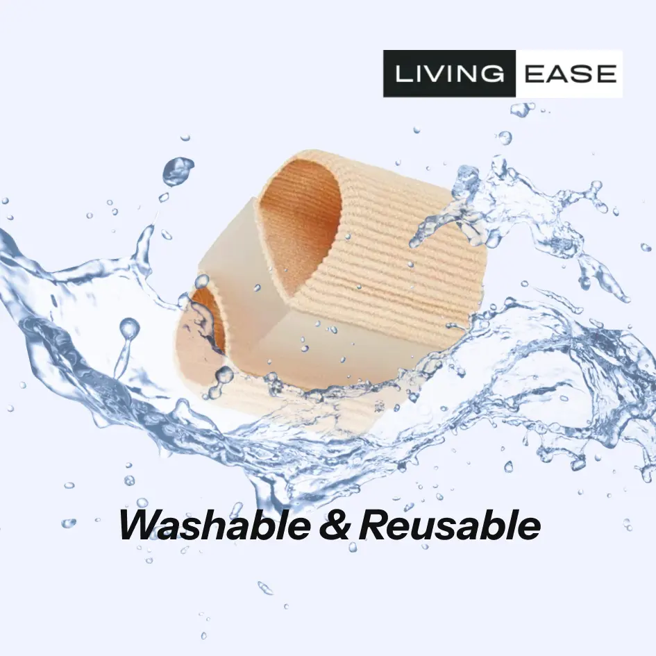 Reusable and comfy! I wear these a few hours a day and my bunion doesn’t hurt as much by the evening. Super easy to rinse off and dry