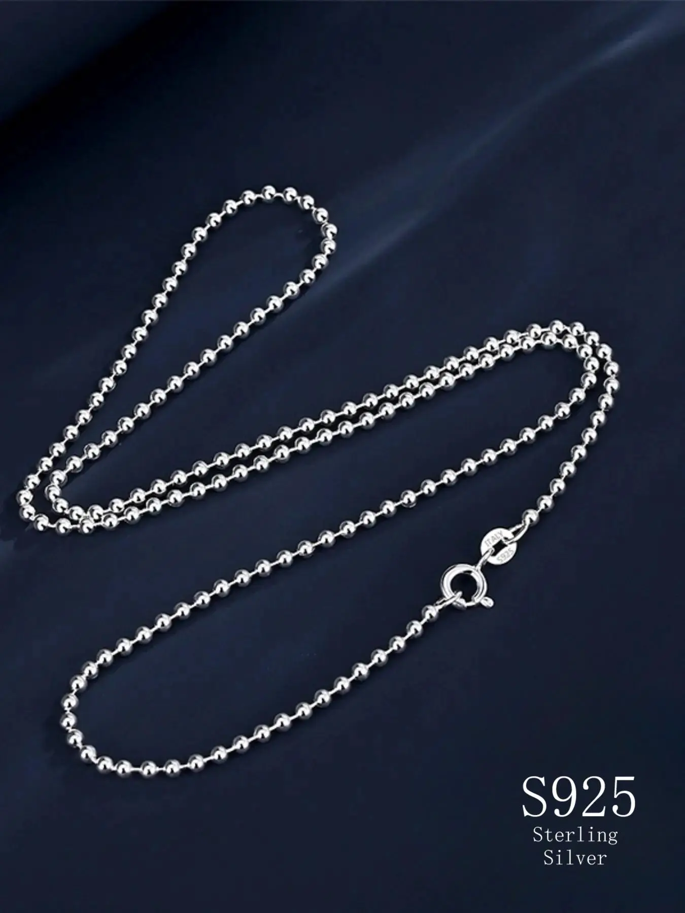 925 Sterling Silver Round Bead Design Necklace, Round Tennis Necklace, Mother's Day Gift, Fashion Jewelry for Party, Daily Clothing Decor, Trendy All-match & Exquisite Jewelry for Birthday Gift