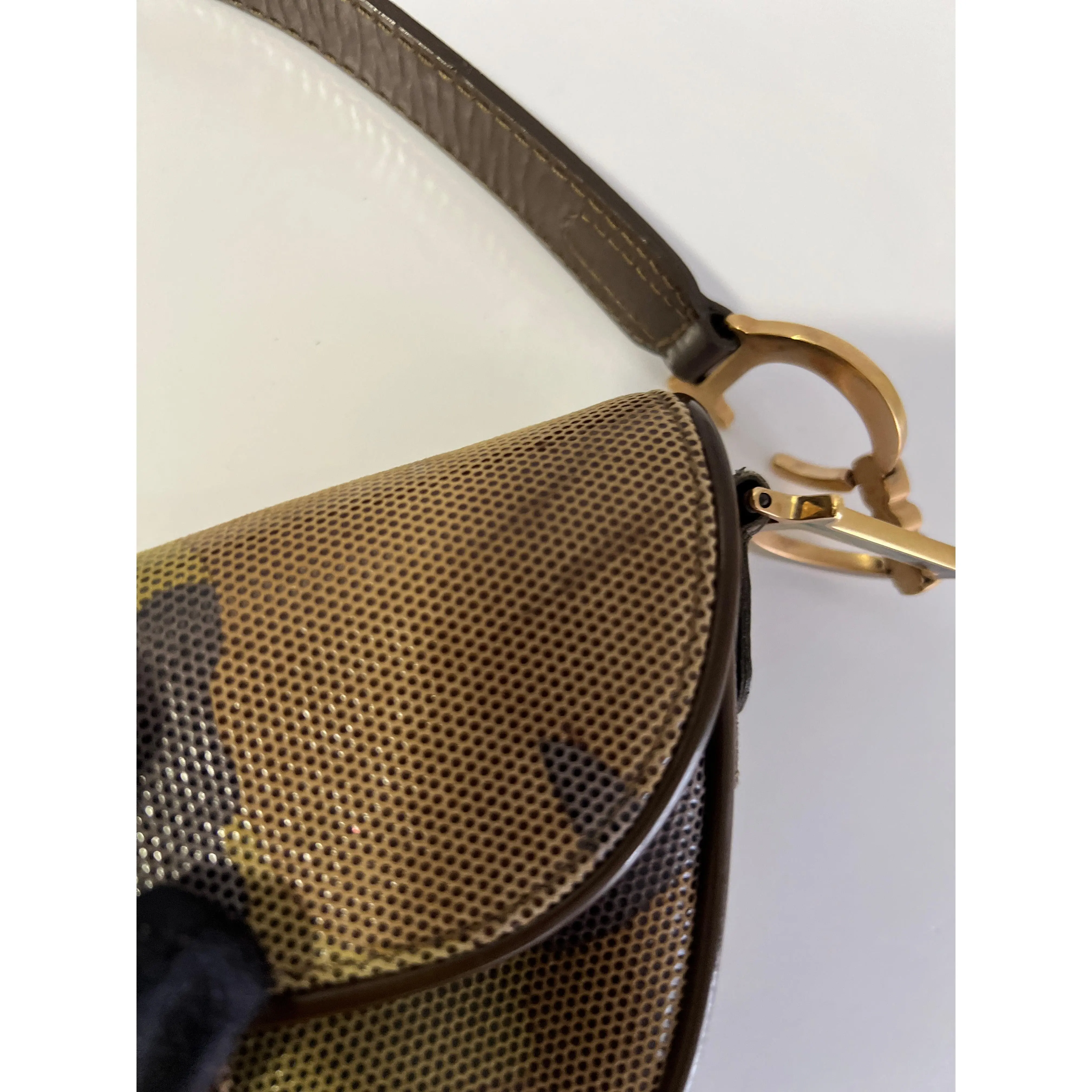 Pre-owned Dior leather Shoulder Bags Extremely rare small size camouflage saddle bag