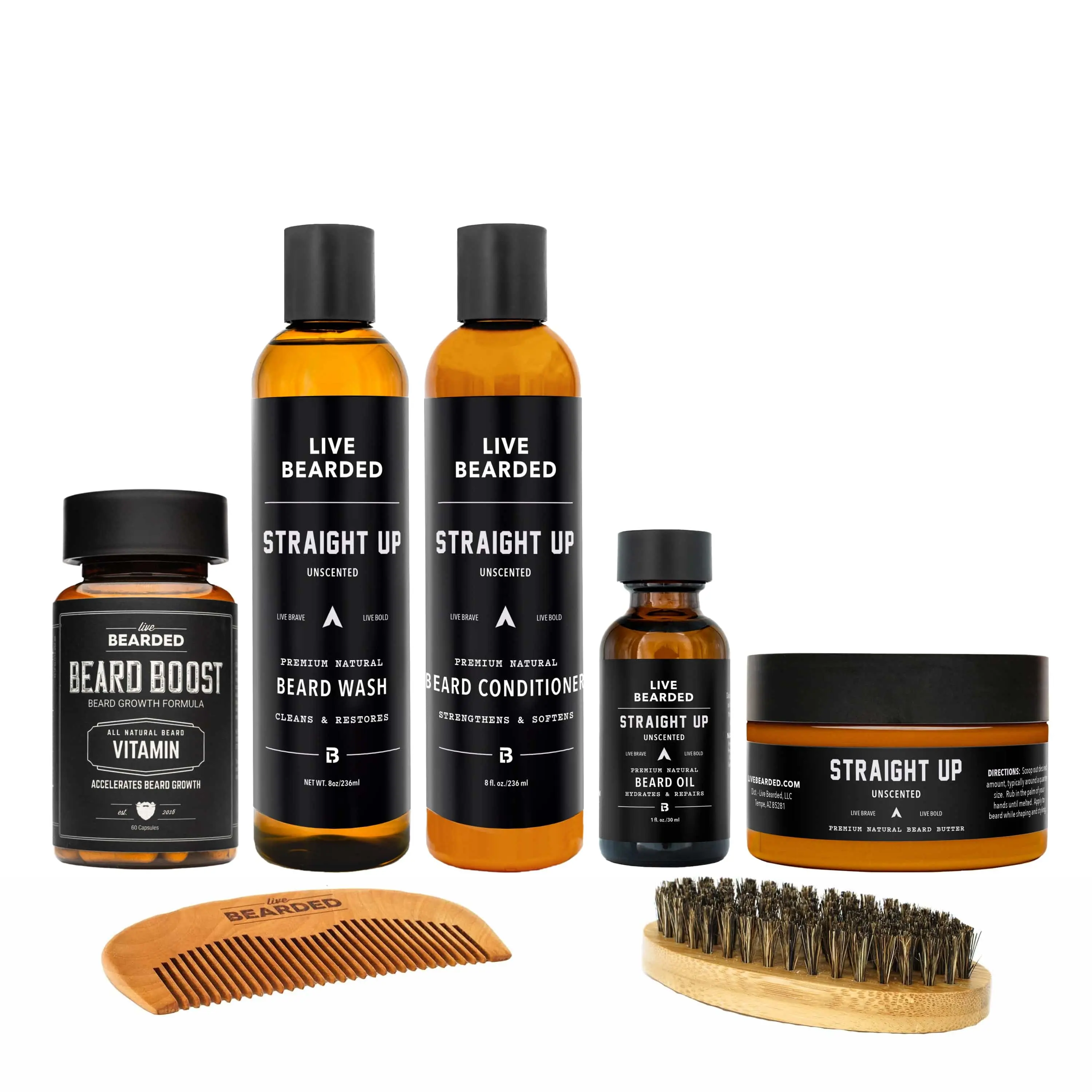 The Total Beardsman beard kit was created for the ultimate beardsman. With this bundle, you get our best-selling beard oil, butter, wash, and conditioner plus our all-natural wooden beard comb, boars hair brush, and one bottle of our infamous Beard Boost vitamins! This beard kit will have your beard and mustache looking like superstar status.