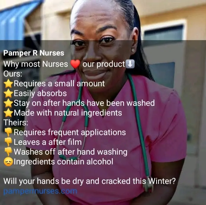 This butter was created to provide moisture for nurses to provide and lock in moisture between hand washing. By the end of your shift this product will leave your skin with a velvety satin non greasy feeling. This product consist of cremely like texture.